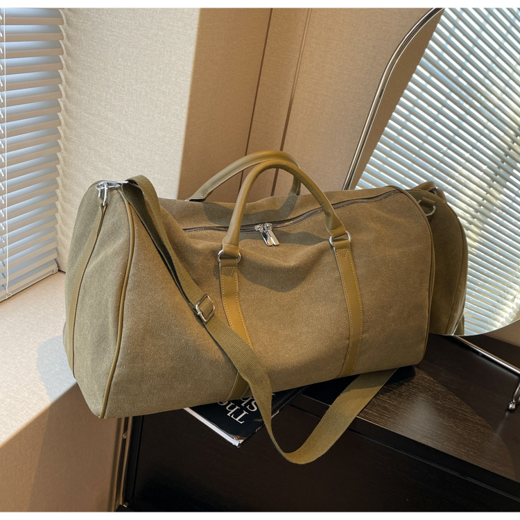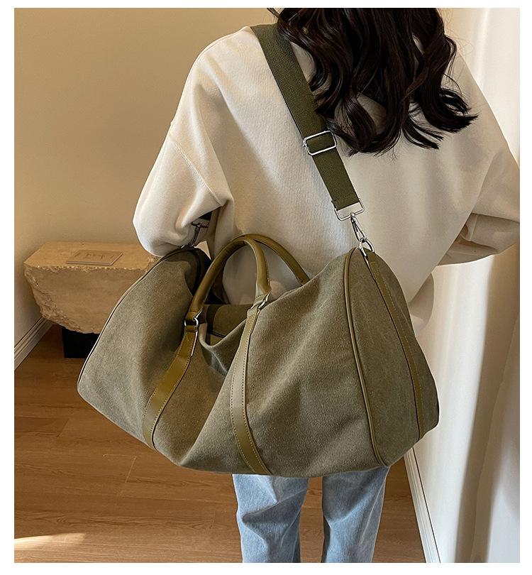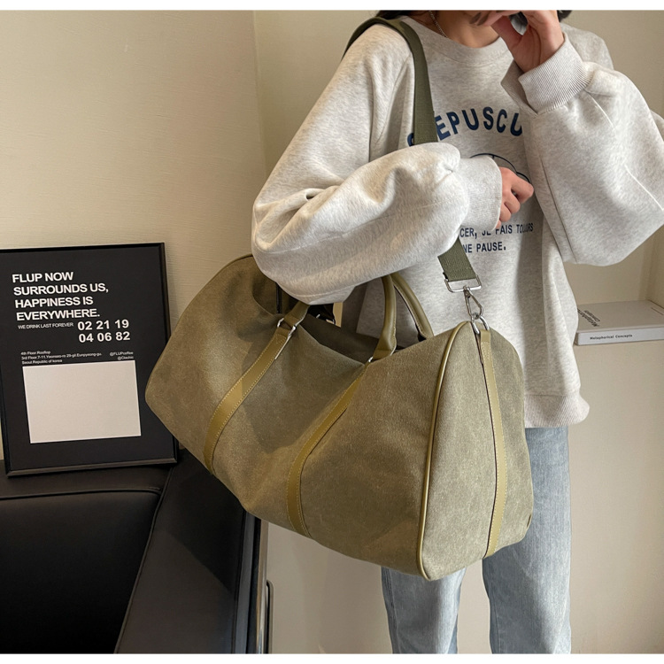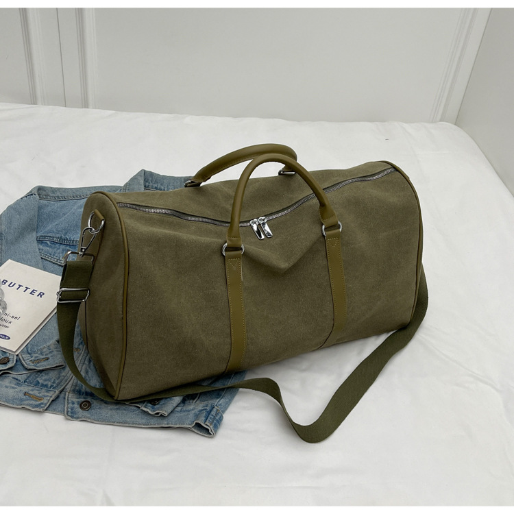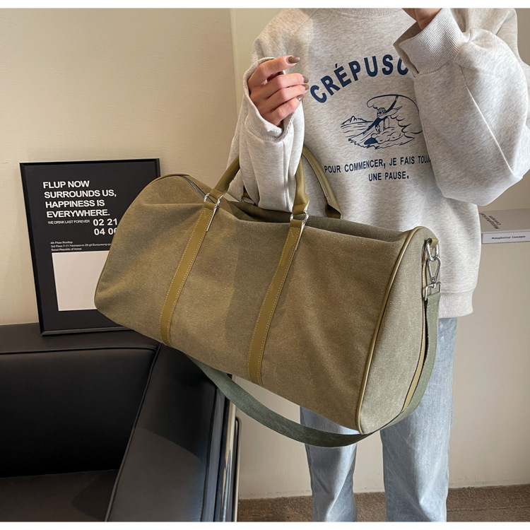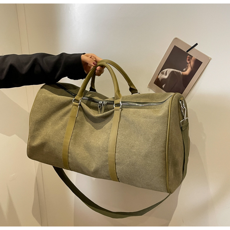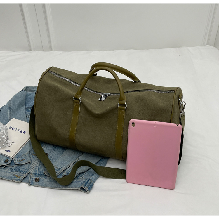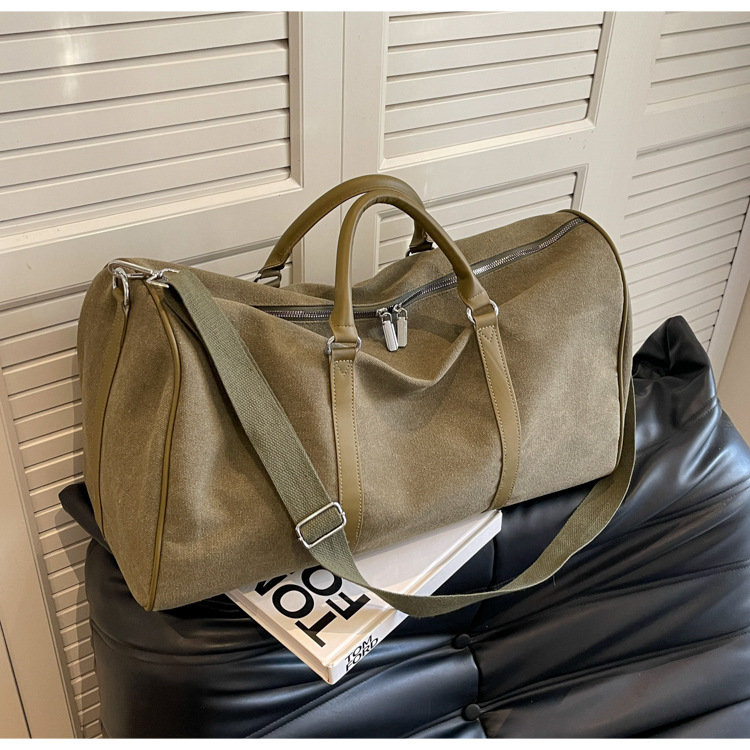 Nueva bolsa de equipaje, bolsa de lona fuerte, bolsa verde militar de gran capacidad para viajes cortos de hombro, bolsa de mano