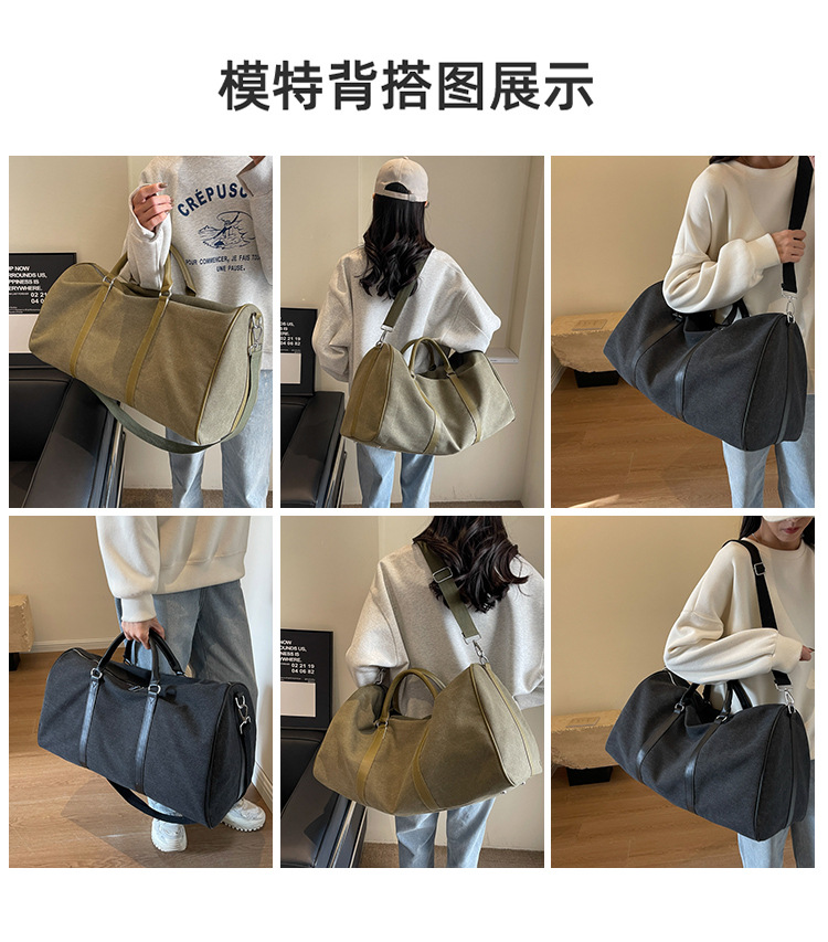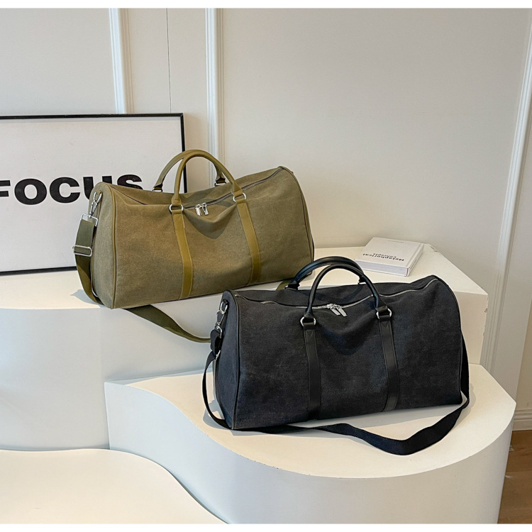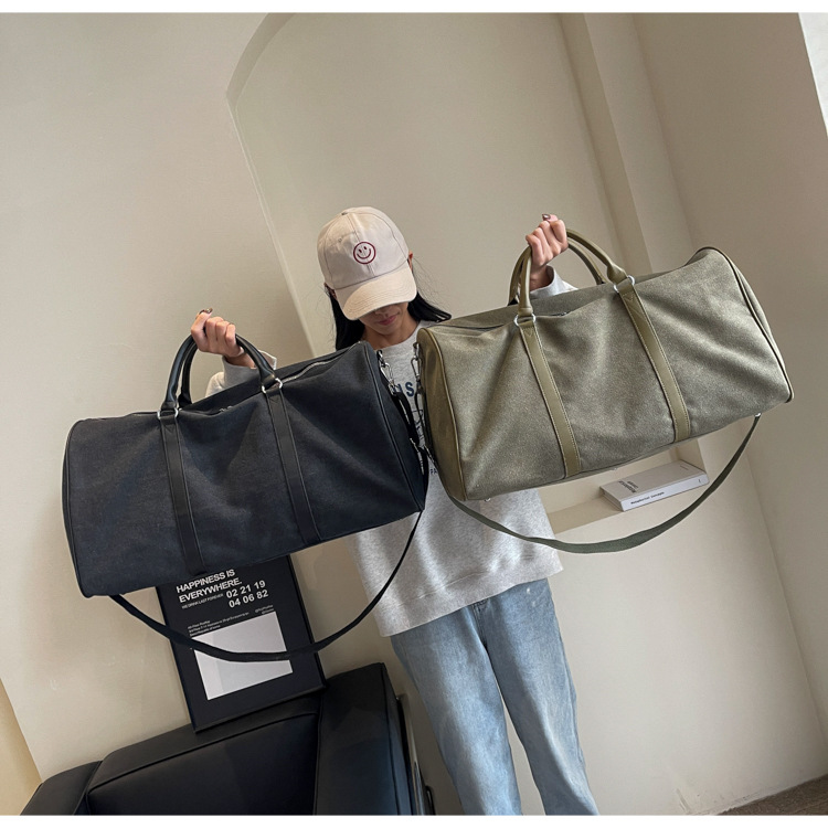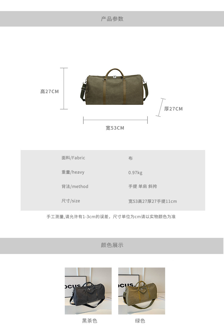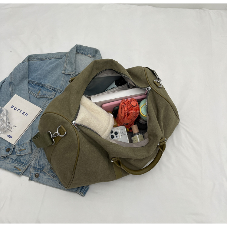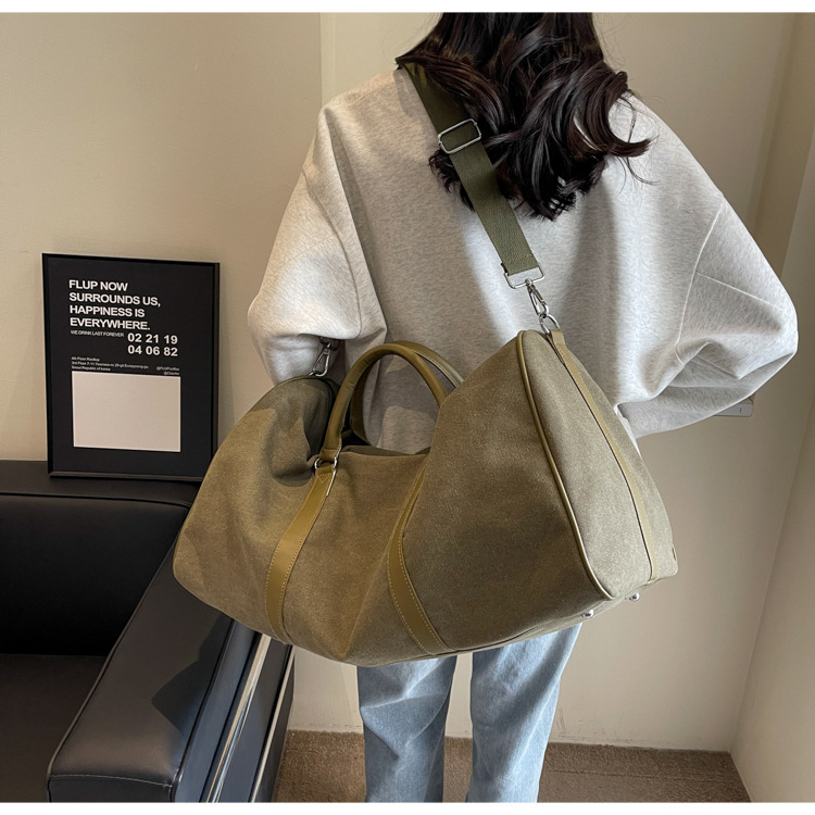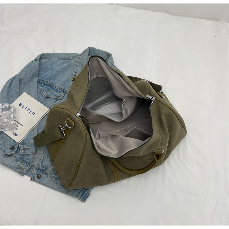 Nueva bolsa de equipaje, bolsa de lona fuerte, bolsa verde militar de gran capacidad para viajes cortos de hombro, bolsa de mano