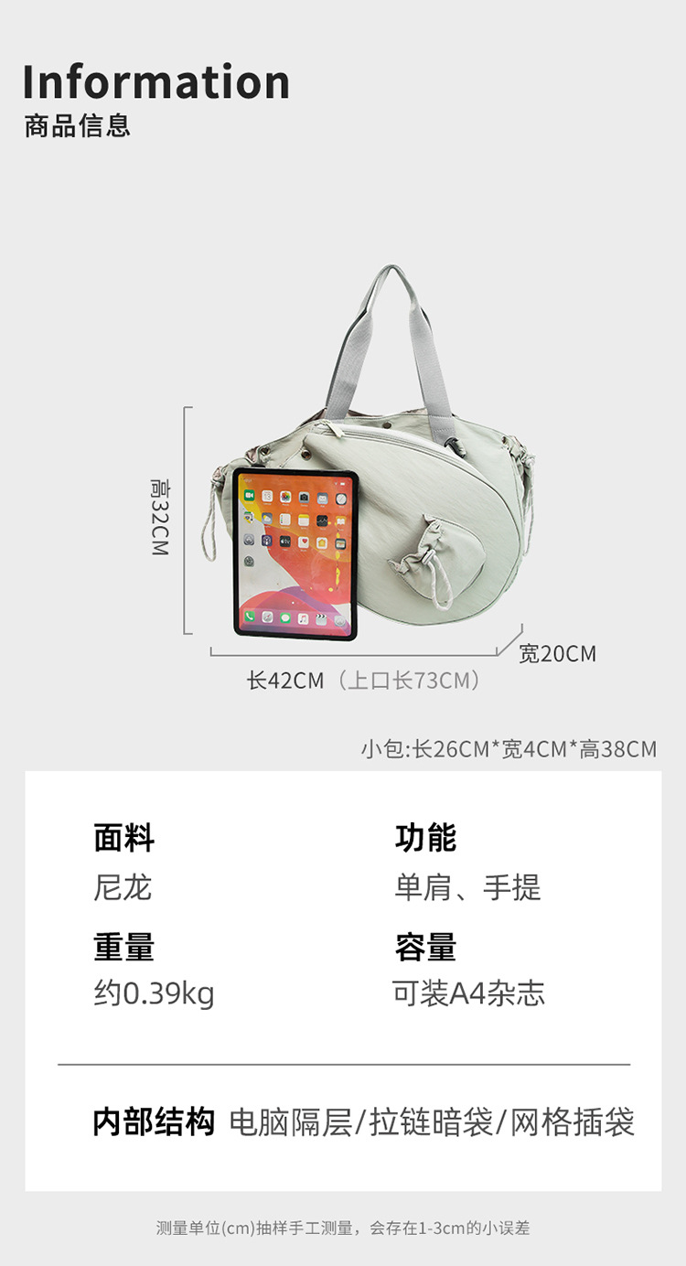 Nueva bolsa de viaje de corta distancia transfronteriza, bolsa de fitness deportiva ligera, bolsa de yoga, bolsa de almacenamiento portátil de gran capacidad para la producción