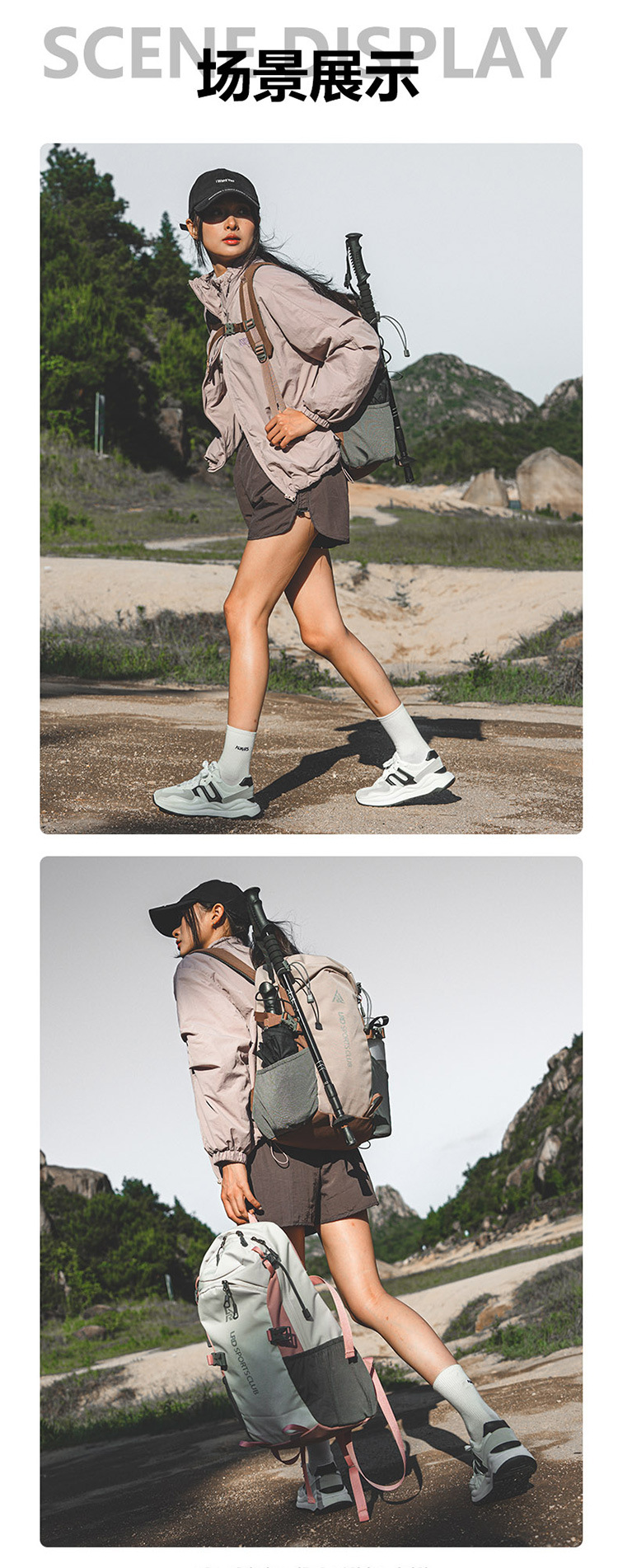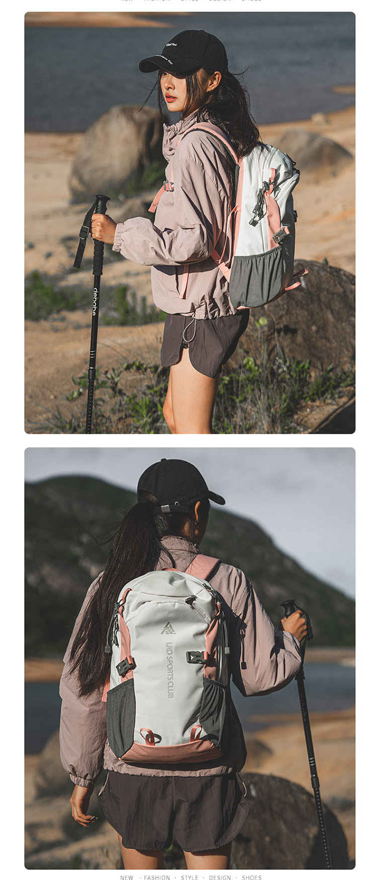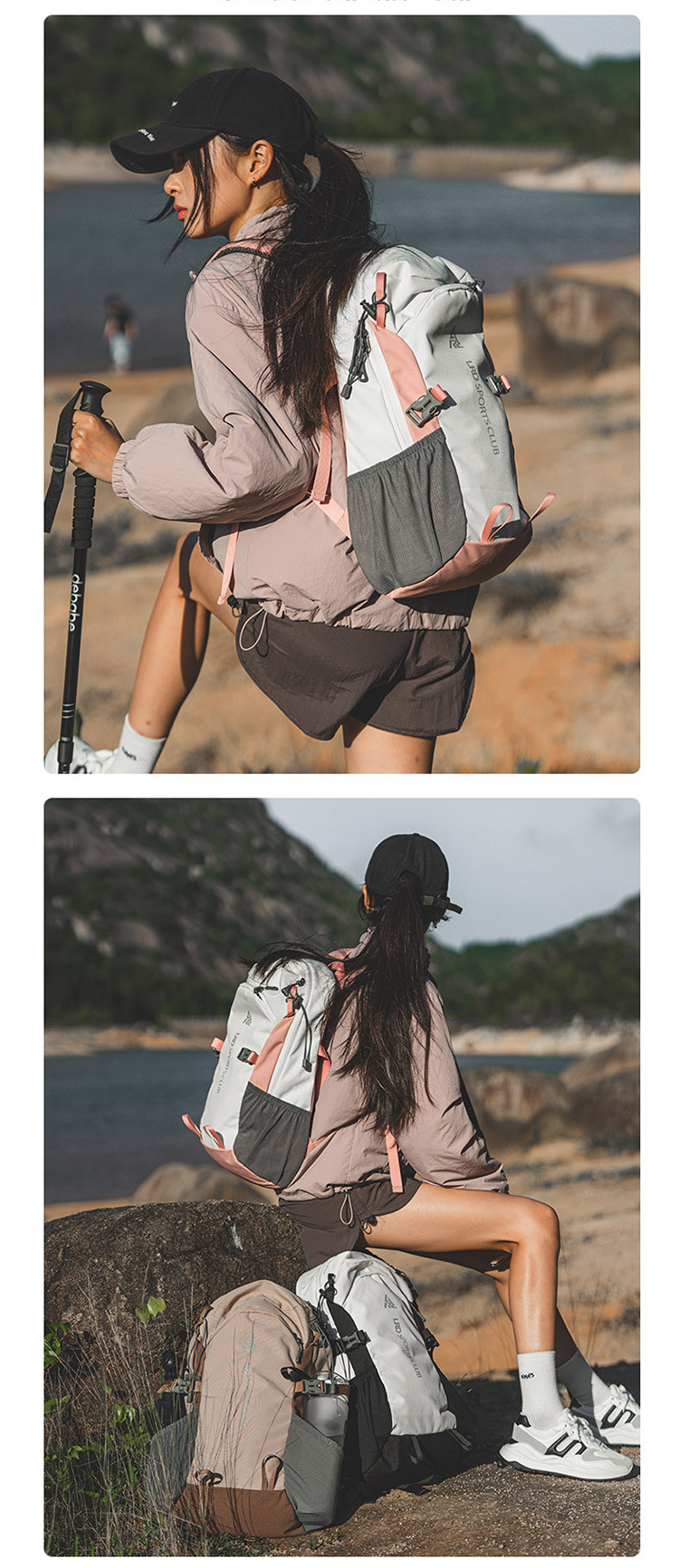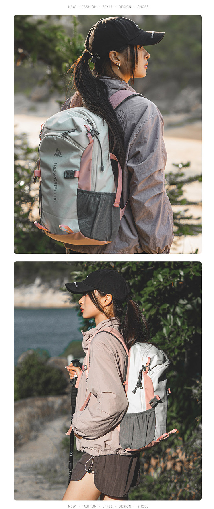 2025 nueva bolsa de viaje de doble hombro para mujer mochila ligera de gran capacidad bolsa de montañismo multifuncional para caminar por la montaña