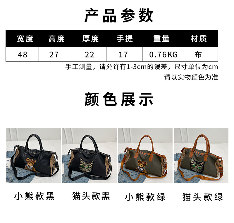 Oso de gran capacidad de viaje ligero gato color de contraste bolsa de equipaje de embarque bolsa de almacenamiento de espera bolsa de viaje de negocios de corta distancia bolsa de viaje