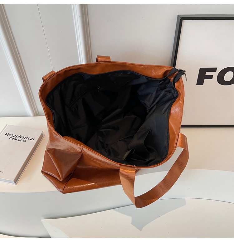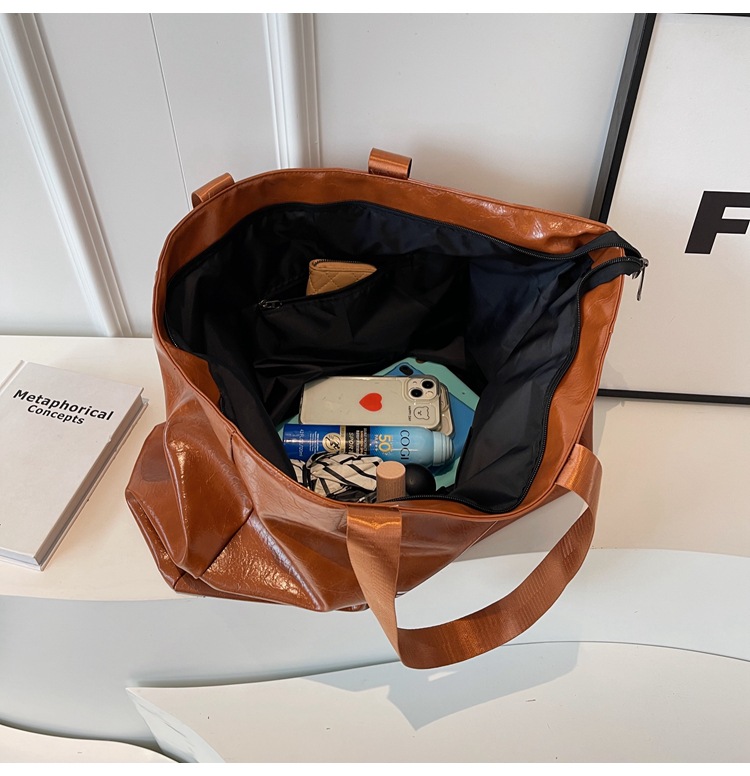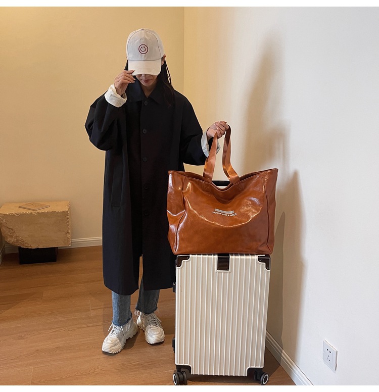Súper suave bolsa grande de moda elegante color sólido aceite de cera de cuero bolsa de equipaje de corta distancia bolsa de yoga fitness bolsa de deporte