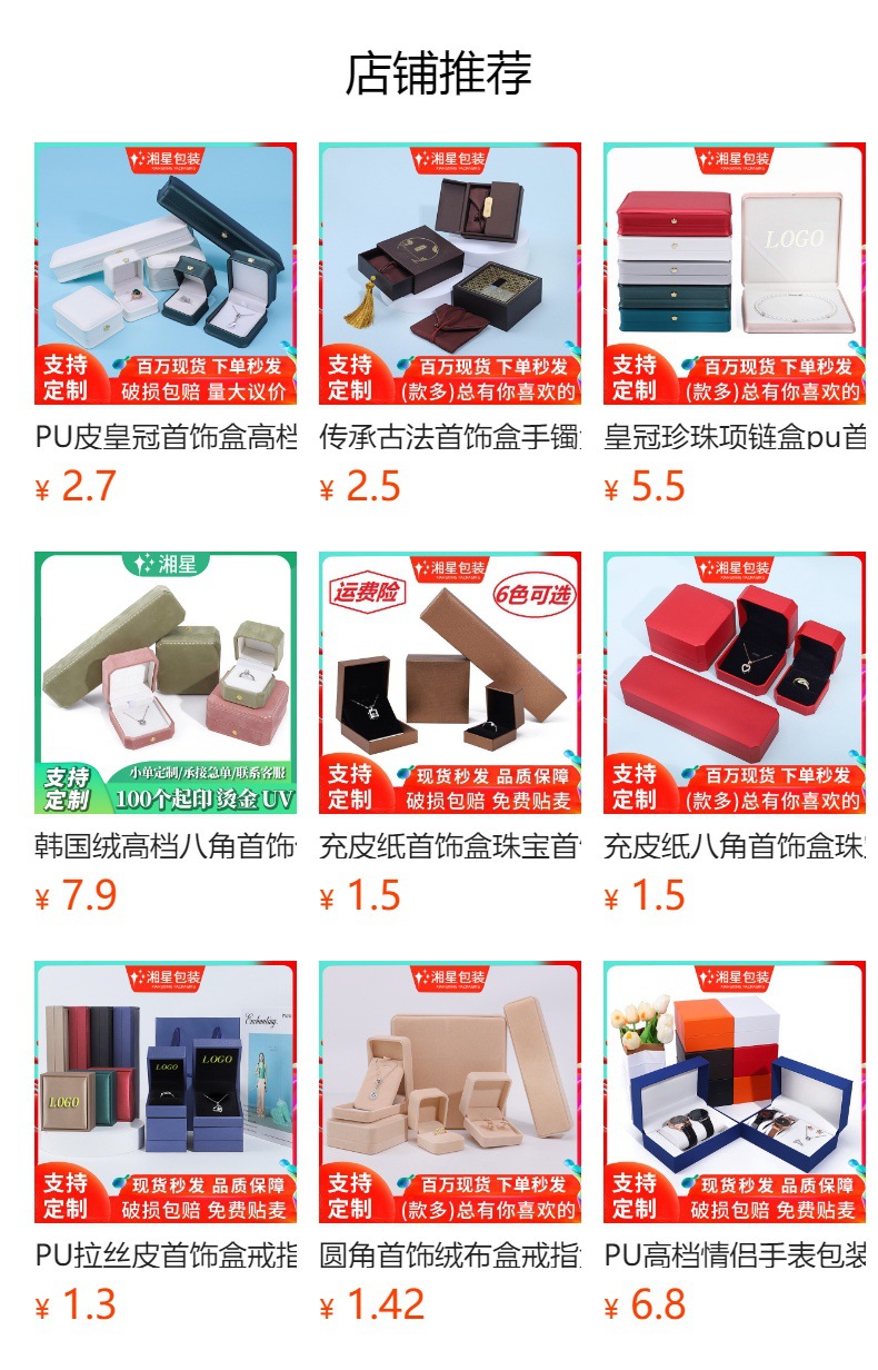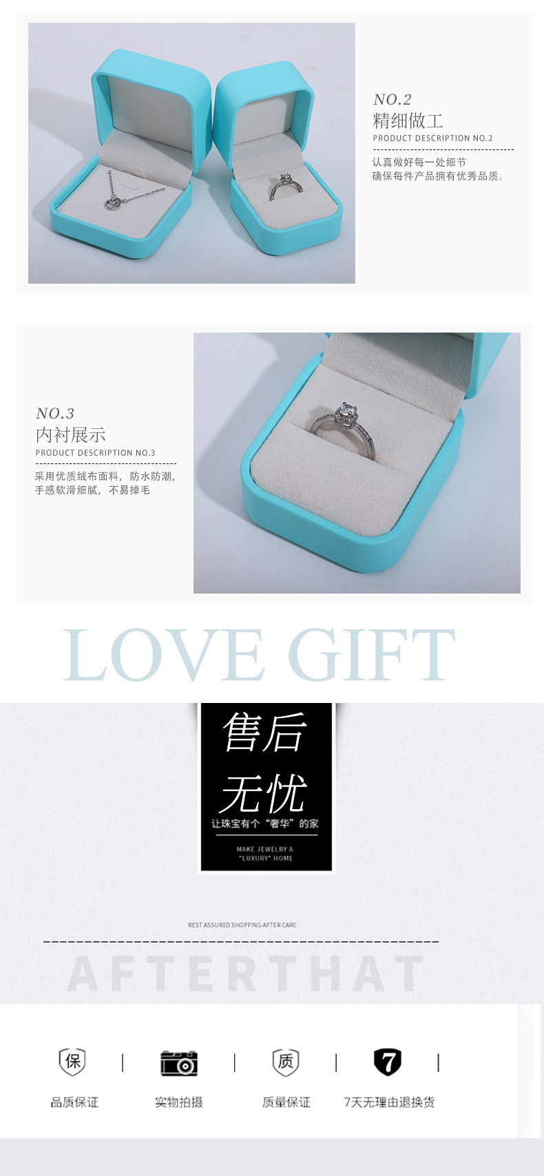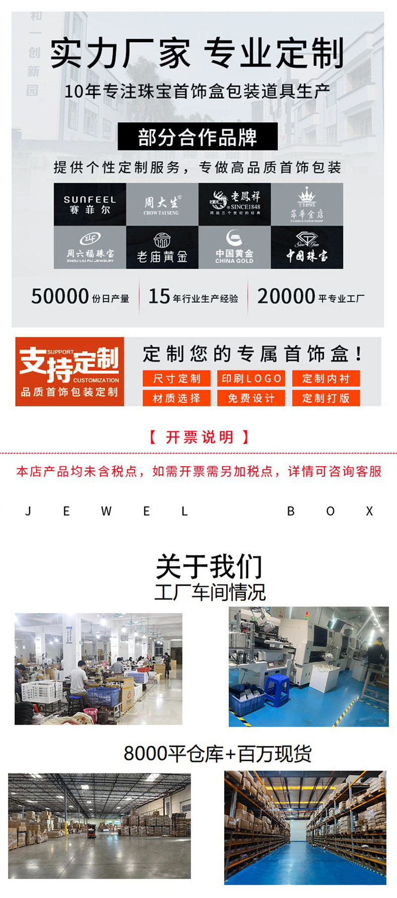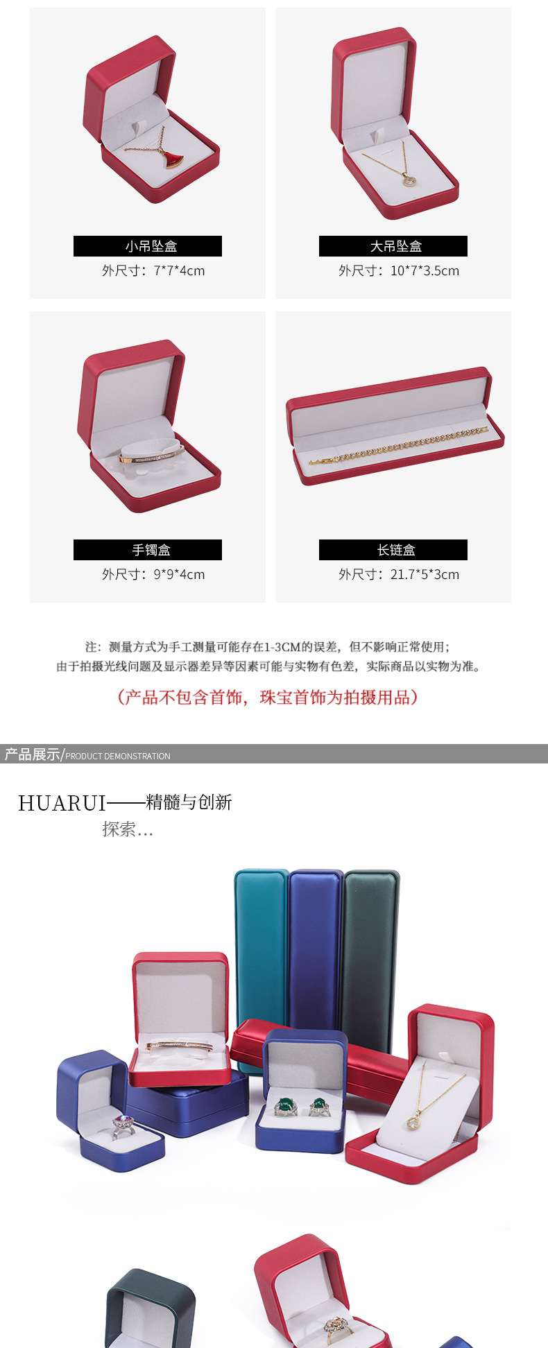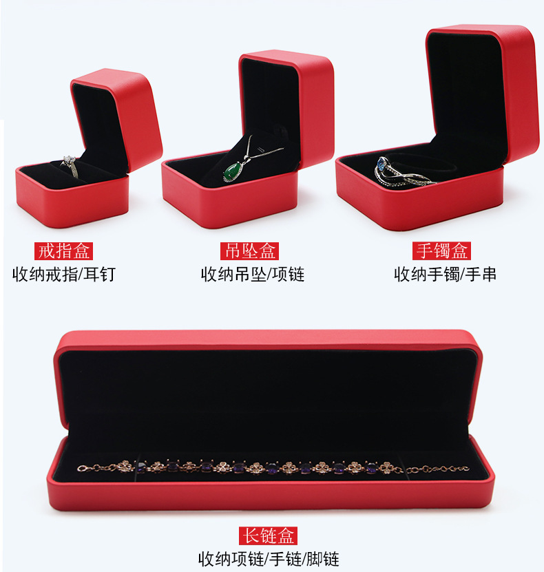| Especificación | Caja de anillo,caja de anillo,Caja de cadena larga,Caja colgante grande 10*7*4cm,Pequeña caja colgante 7*7*4,5 cm,Oreja Stud Caja 7*7*4,5 cm,Caja de pulsera 9,5*9,5*6 |