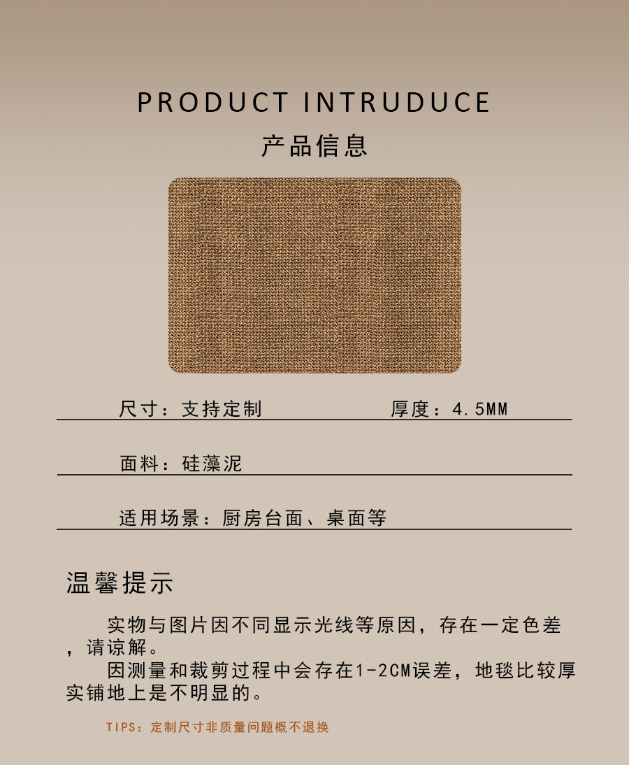 | Especificaciones | 40 * 50CM anti-sucio, sin limpieza, 50 * 80CM absorción de agua, secado rápido, 60cm * 90cm [anti-deslizante sin desplazamiento], 40CM * 60CM [cuidado fácil], tamaño personalizado / contacto servicio al cliente de oro, 30 * 40CM anti-desgaste y anti-racabatería |