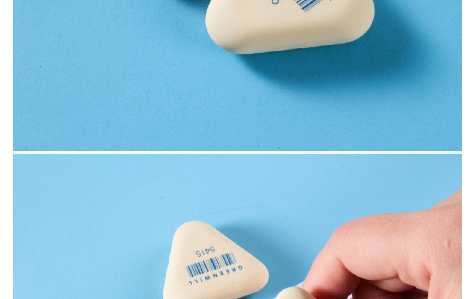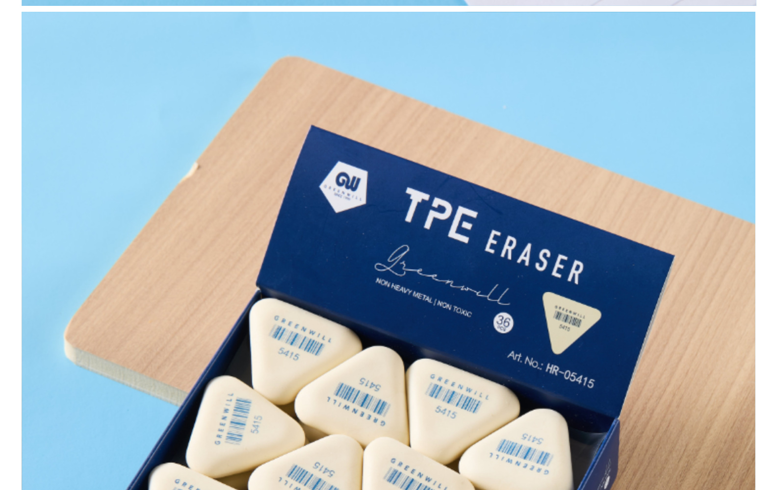 La goma de borrar del triángulo de la caspa es libre de caspa y súper limpia para los estudiantes de primaria.
