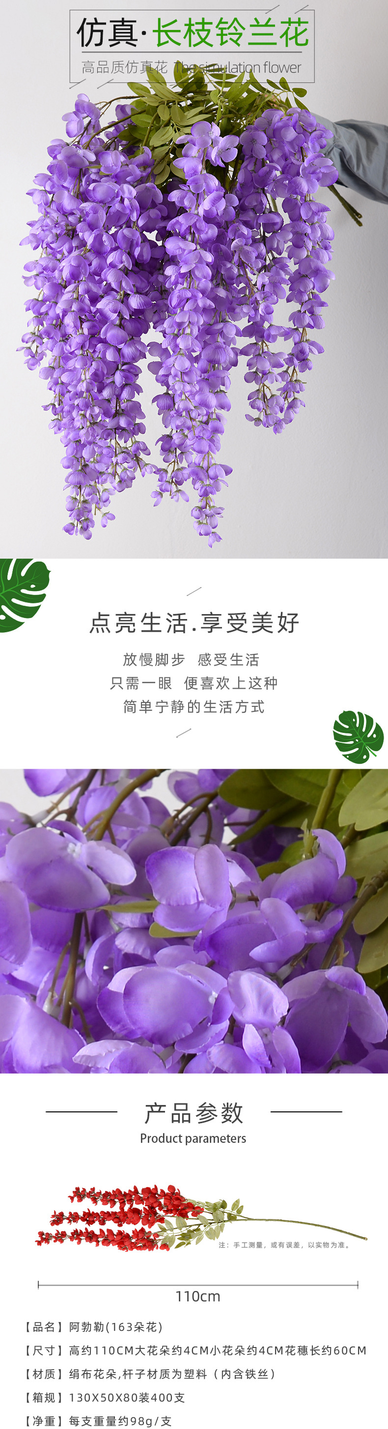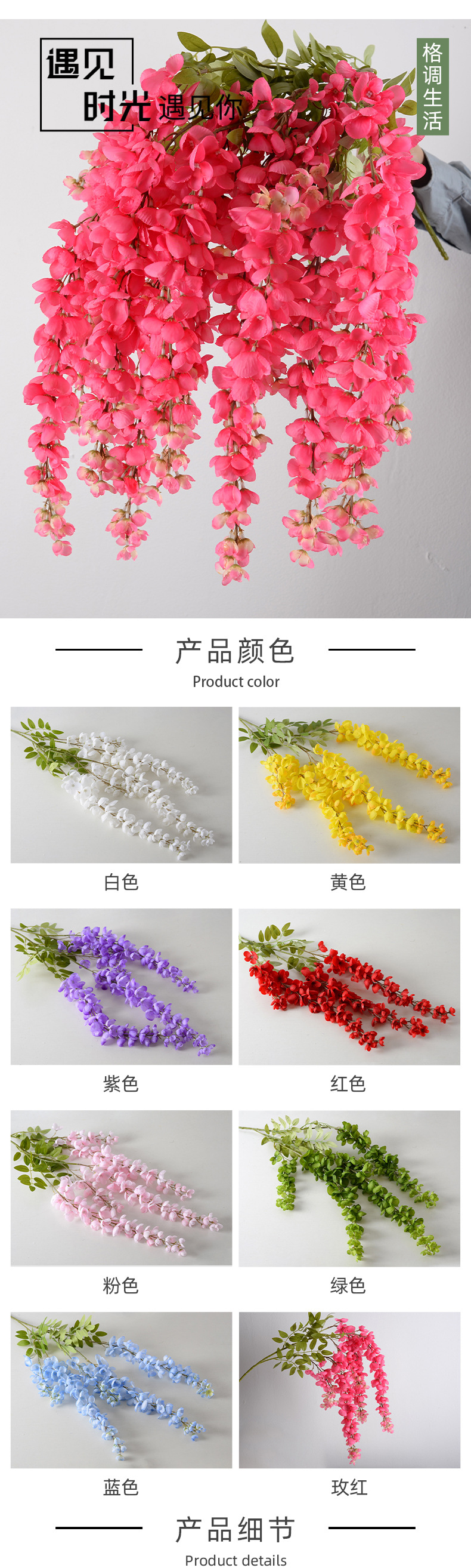 Amazon azul Rosa Hortensia Garland 2023 Festival simulación Garland ventana puerta colgante decoración fotografía props al por mayor