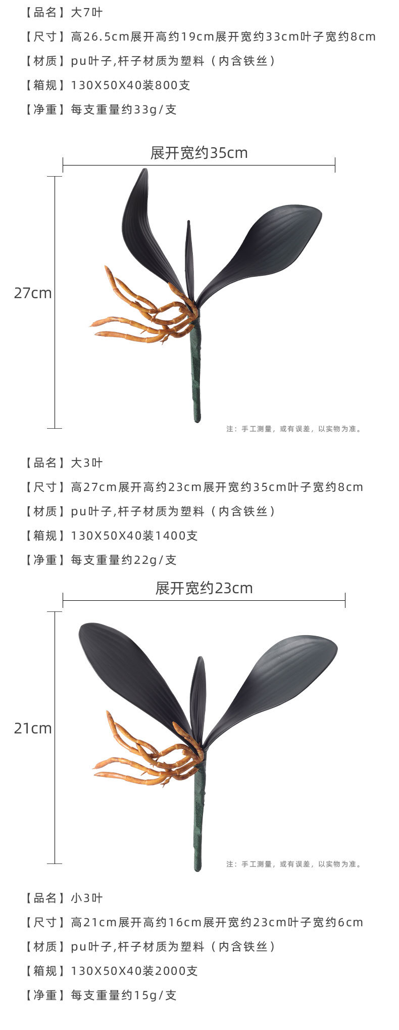 | Color | 3 hojas grandes, 5 hojas grandes, 7 hojas grandes, 3 hojas pequeñas, 5 hojas pequeñas, 5 hojas medianas |