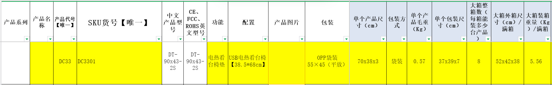 产品及包装参数如下