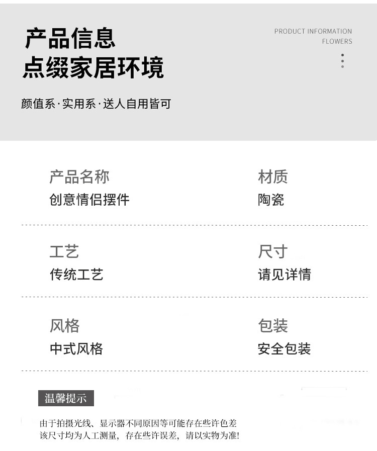 所有图片均为实物拍摄,色差是不可避免的,且陶瓷品的生产工艺特点决定了每一批次出炉的同款陶瓷也会出现颜色上的深浅变化,如果您对颜色要求非常高,请直接同我们客服联系,我们可以直接用手机拍下实物供您比对参考,如还不能达到您的要求,请您慎重购买。