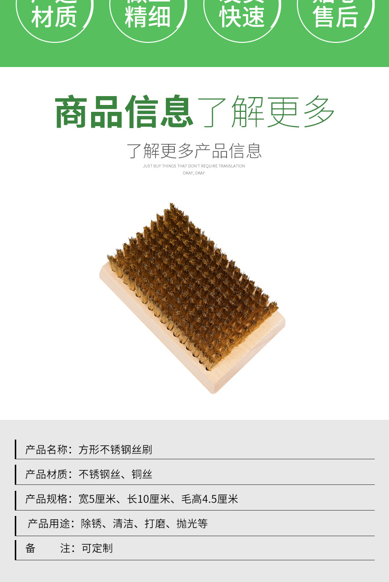 | Especificaciones y modelos | Acero inoxidable; alambre de cepillo cuadrado 9 * 15, acero inoxidable; alambre de cepillo cuadrado 0.127 alambre 10 * 16, acero inoxidable; alambre de cepillo cuadrado 0.076 alambre 10 * 16, alambre de cobre; alambre de cepillo cuadrado 0.076, alambre de cobre; alambre de cepillo cuadrado alambre corrugado de cobre 9 * 15, alambre de cobre; alambre de cepillo cuadrado alambre de cobre 0.127 alambre 10 * 16, alambre de cobre; cepillo grande |