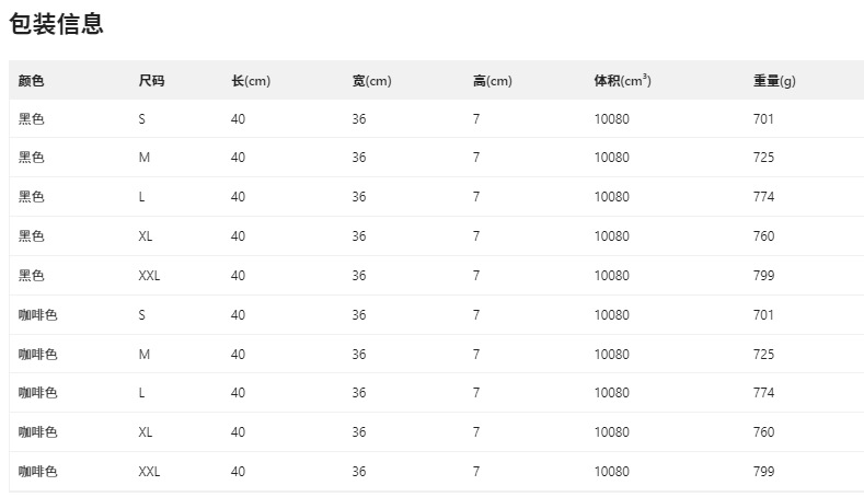 | Colores | Negro,Camel,Albaricoque,El peso máximo es de aproximadamente 799 g. |