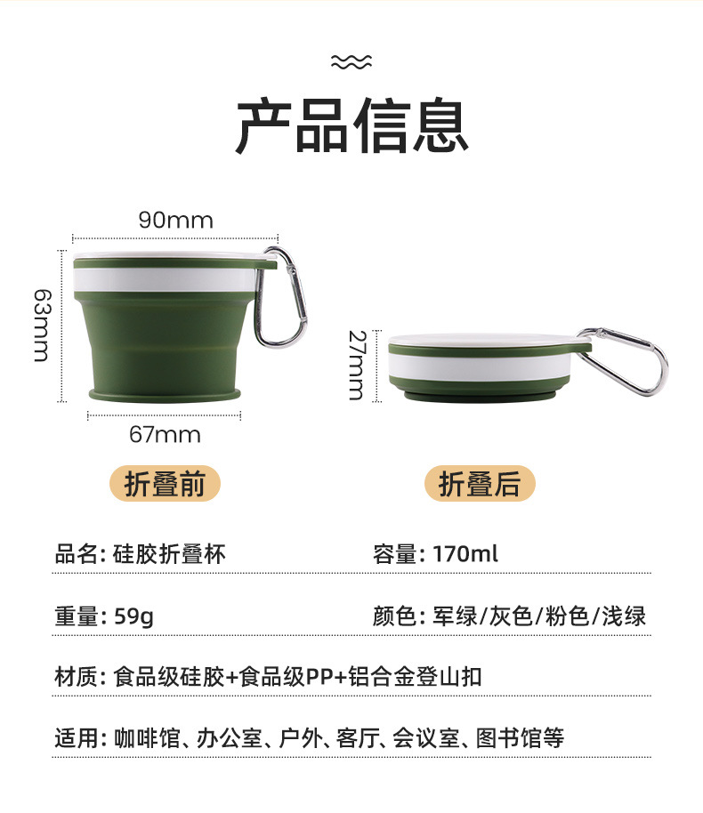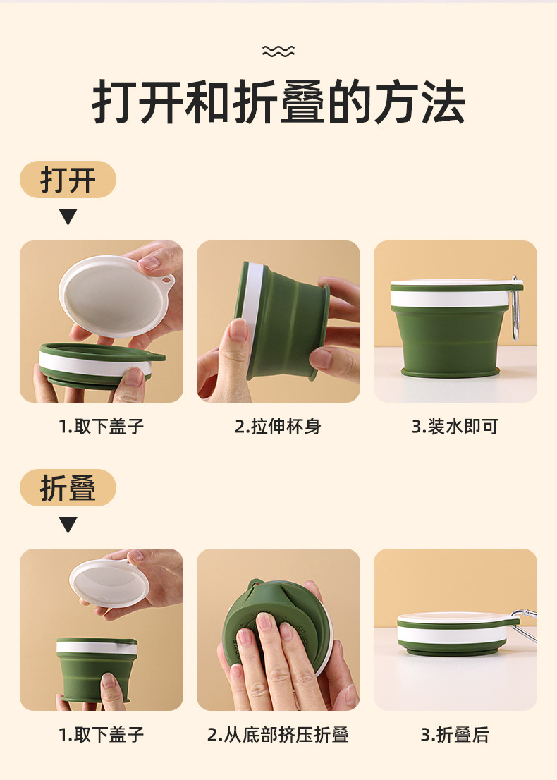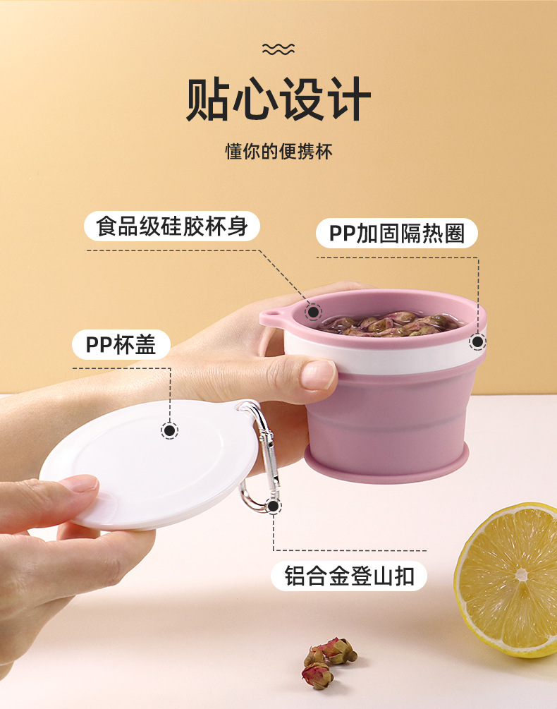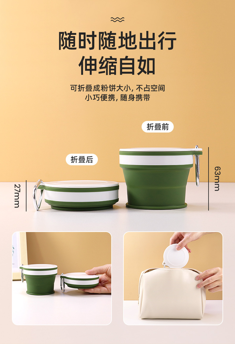 Nuevo producto de grado alimenticio silicona taza telescópica al aire libre taza de enjuague bucal plegable portátil mini taza de mano