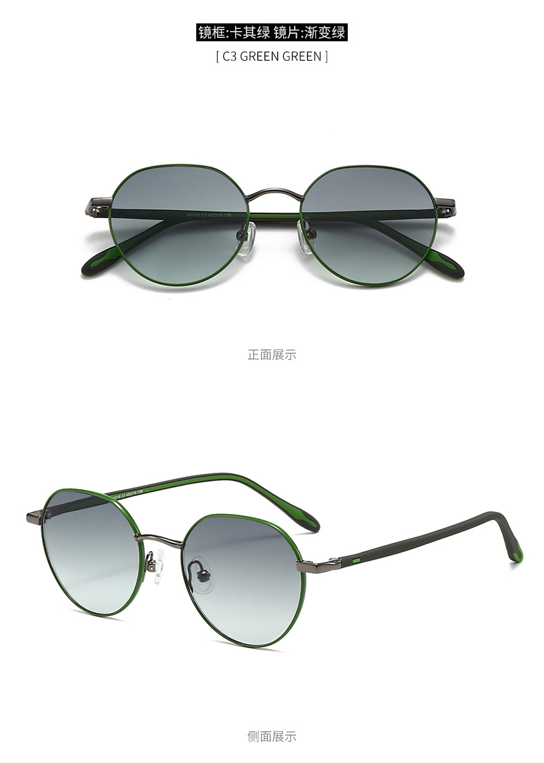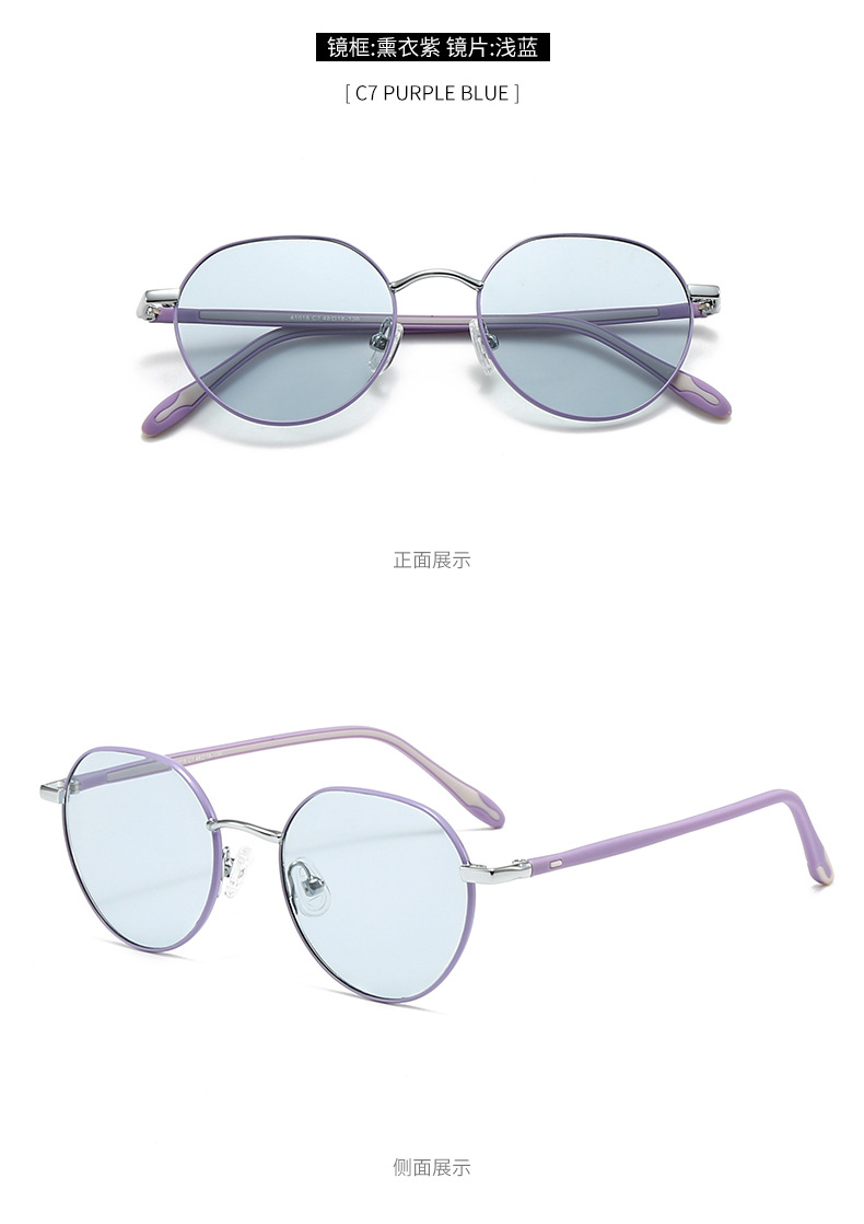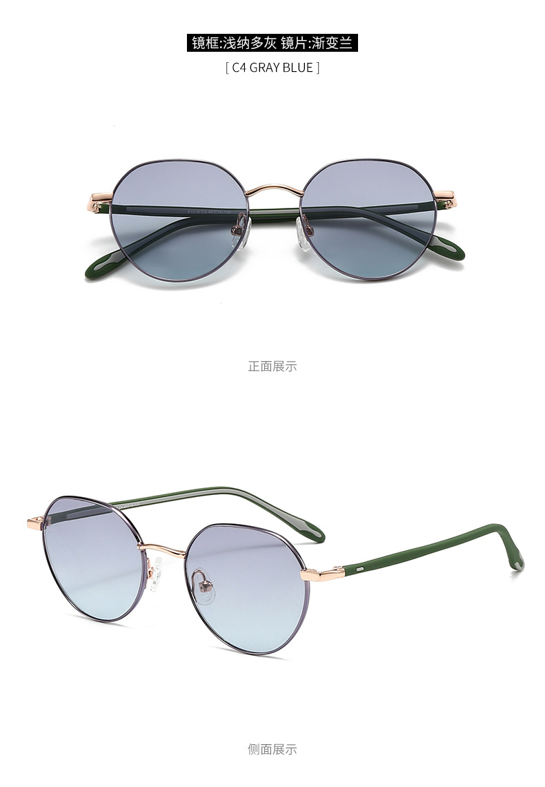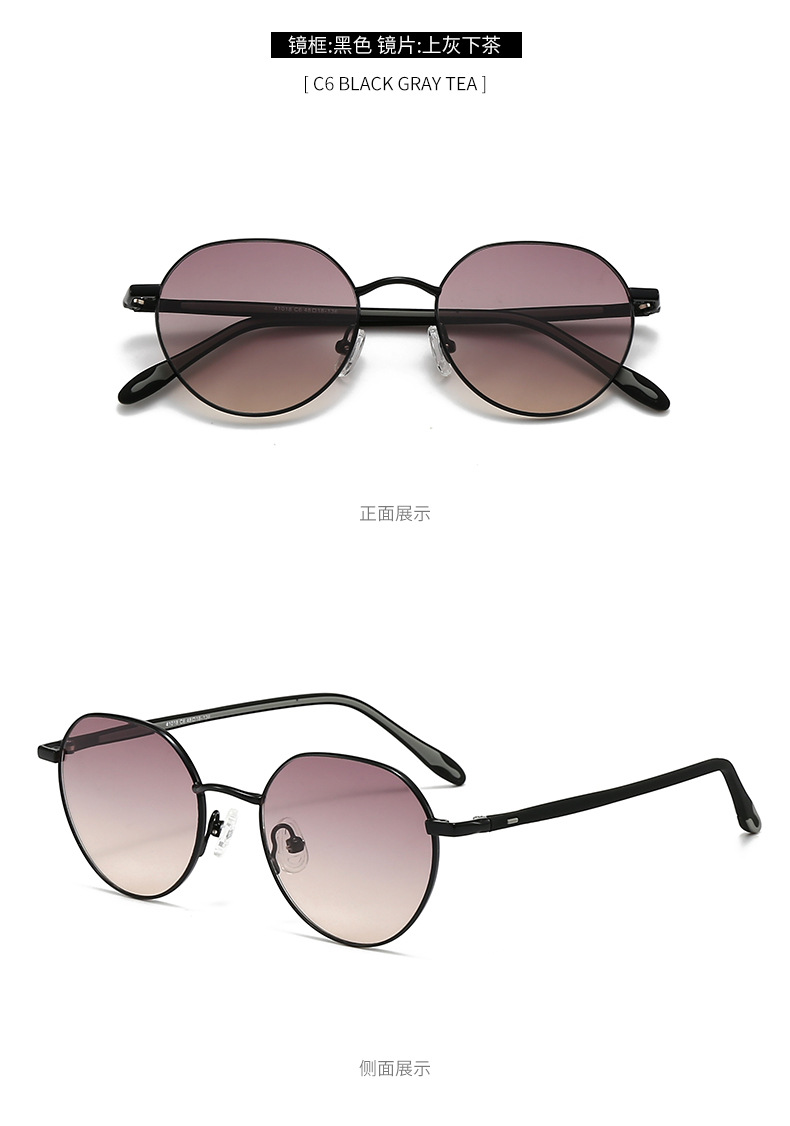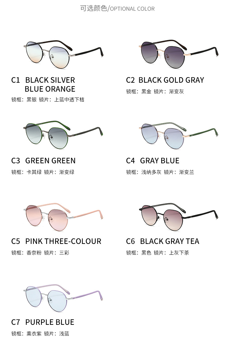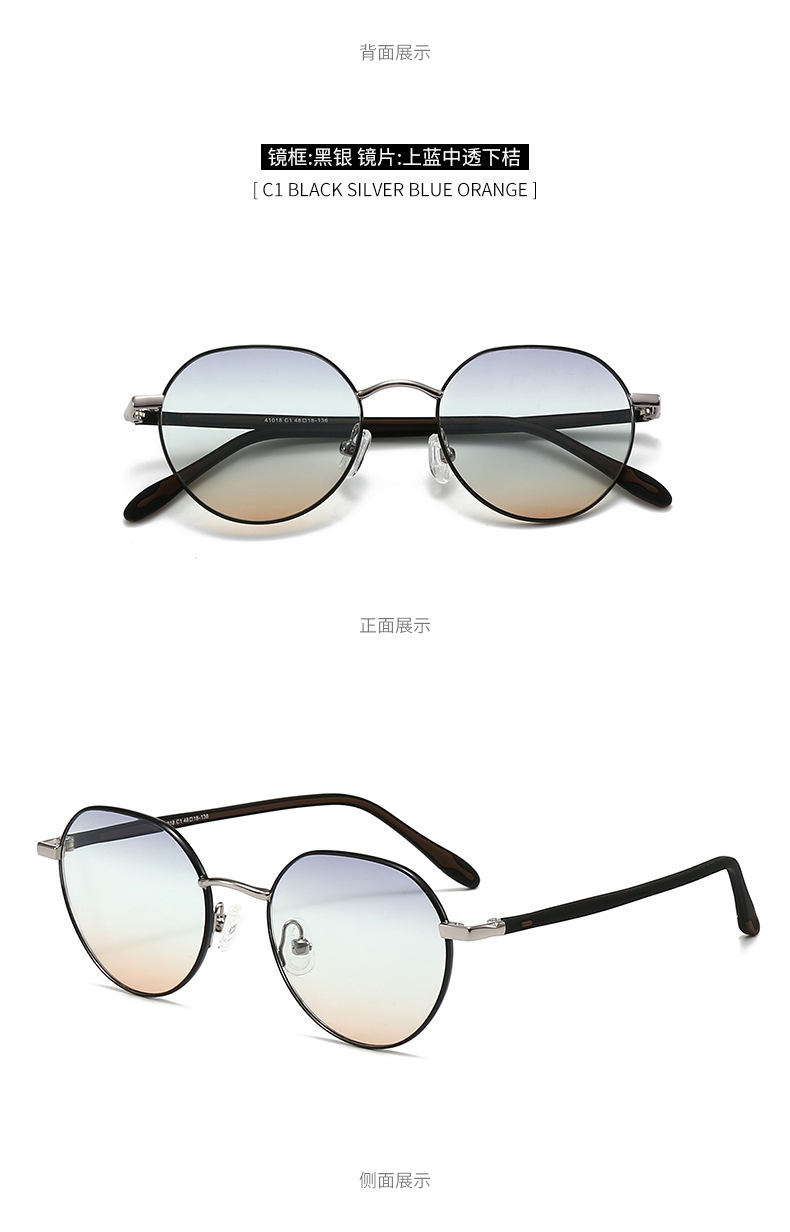 | Color del marco | c1 lentes de plata negra en la cesta de naranja, c2 lentes de oro negro en gris, c3 lentes de verde kakí en verde, c4 lentes de gris claro en azul, c5 lentes de polvo de Chanel en color tricolor, c6 lentes negras en gris bajo té, c7 lentes de lavanda en azul claro |