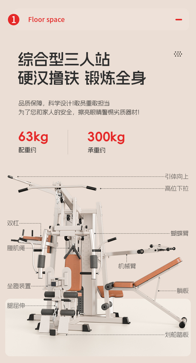 Dispositivo de entrenamiento integral, equipo de fitness, conjunto completo de conjunto integrado multifuncional para el hogar, equipo de fuerza deportiva para hombres