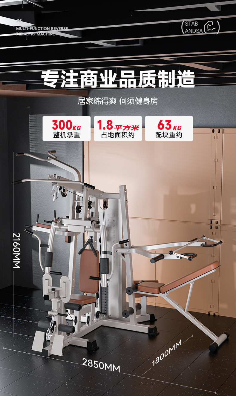 Equipo de entrenamiento integral para casa de tres personas pie inverso multifuncional equipo de ejercicios masculinos de fuerza integrada equipo de ejercicio interior