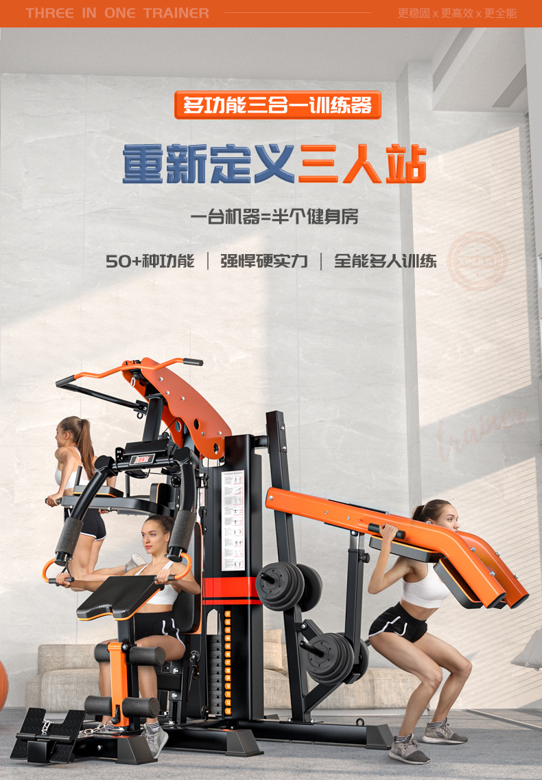 Multifuncional entrenador integral hogar gran combinación traje Estación de tres personas comercial vuelo pájaro cuclillas peso rack