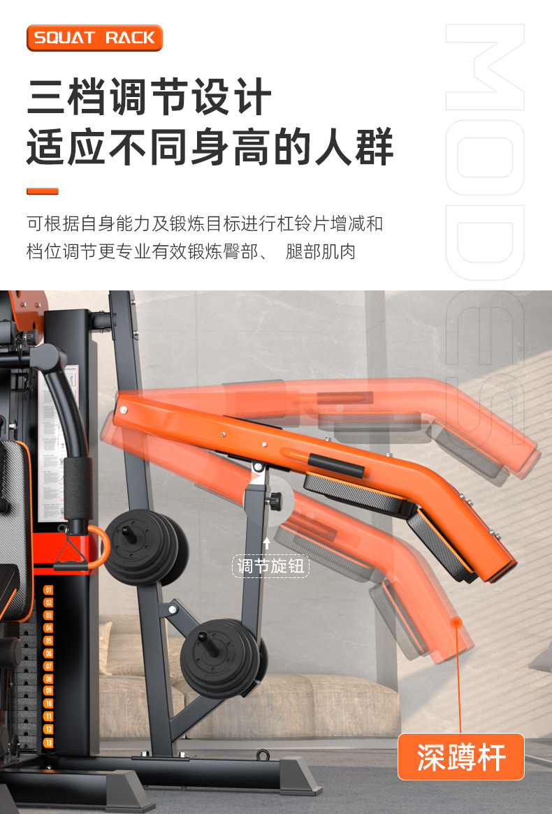 Máquina de entrenamiento integrado multifuncional combinado doméstico conjunto de marco tipo pórtico en cuclillas empuje horizontal marco de elevación de peso