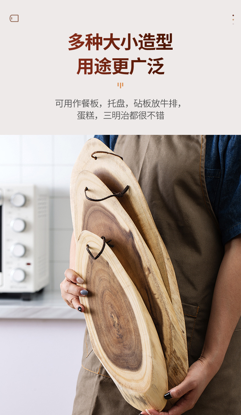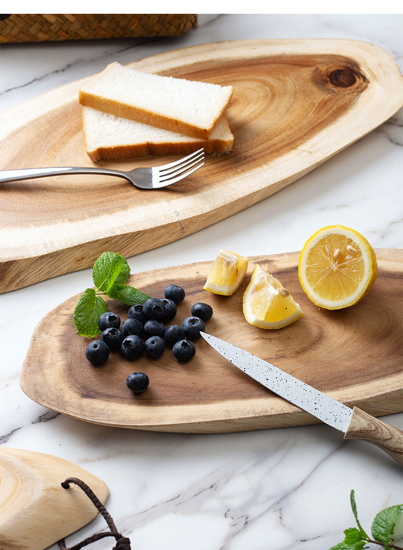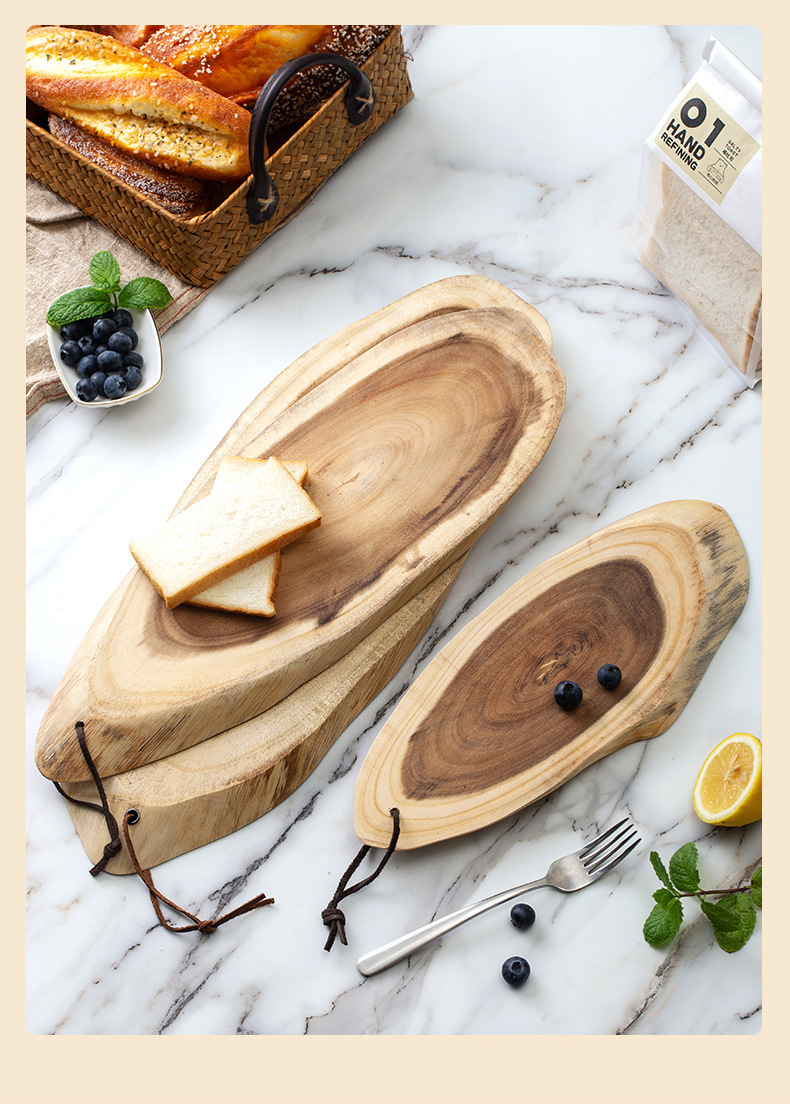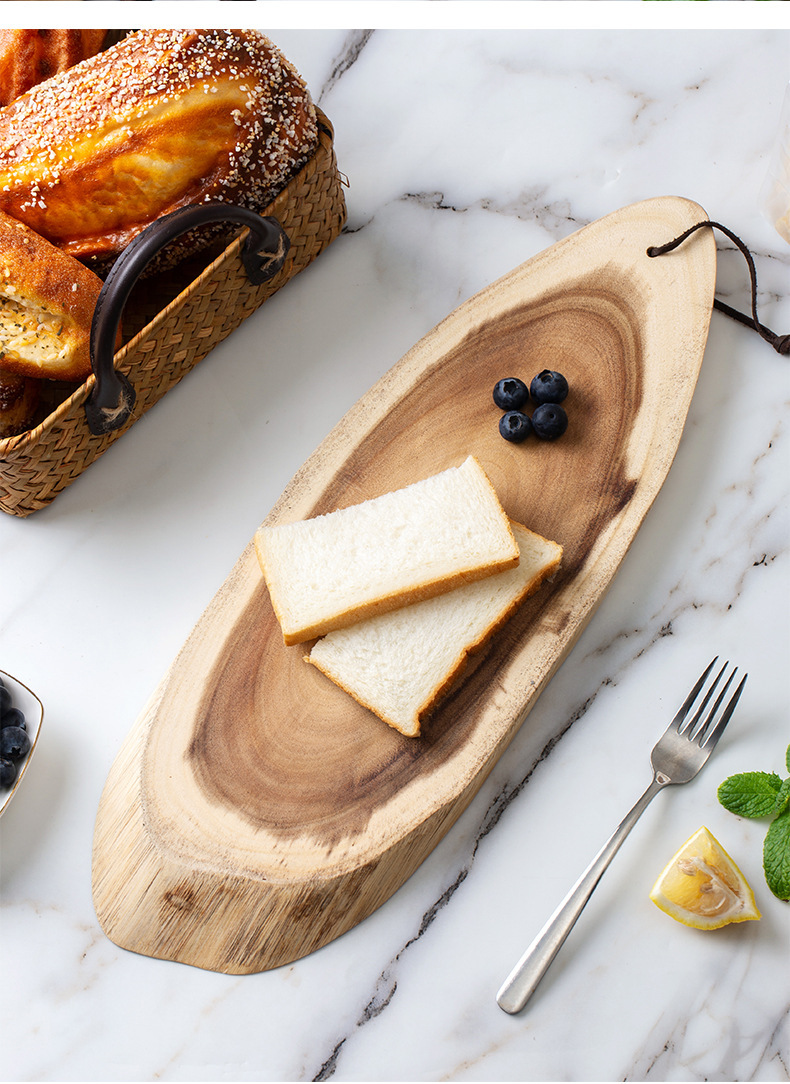 Plato de pizza de madera bandeja de filete de queso de madera maciza en stock postre queso pan plato de queso restaurante occidental plato de frutas secas