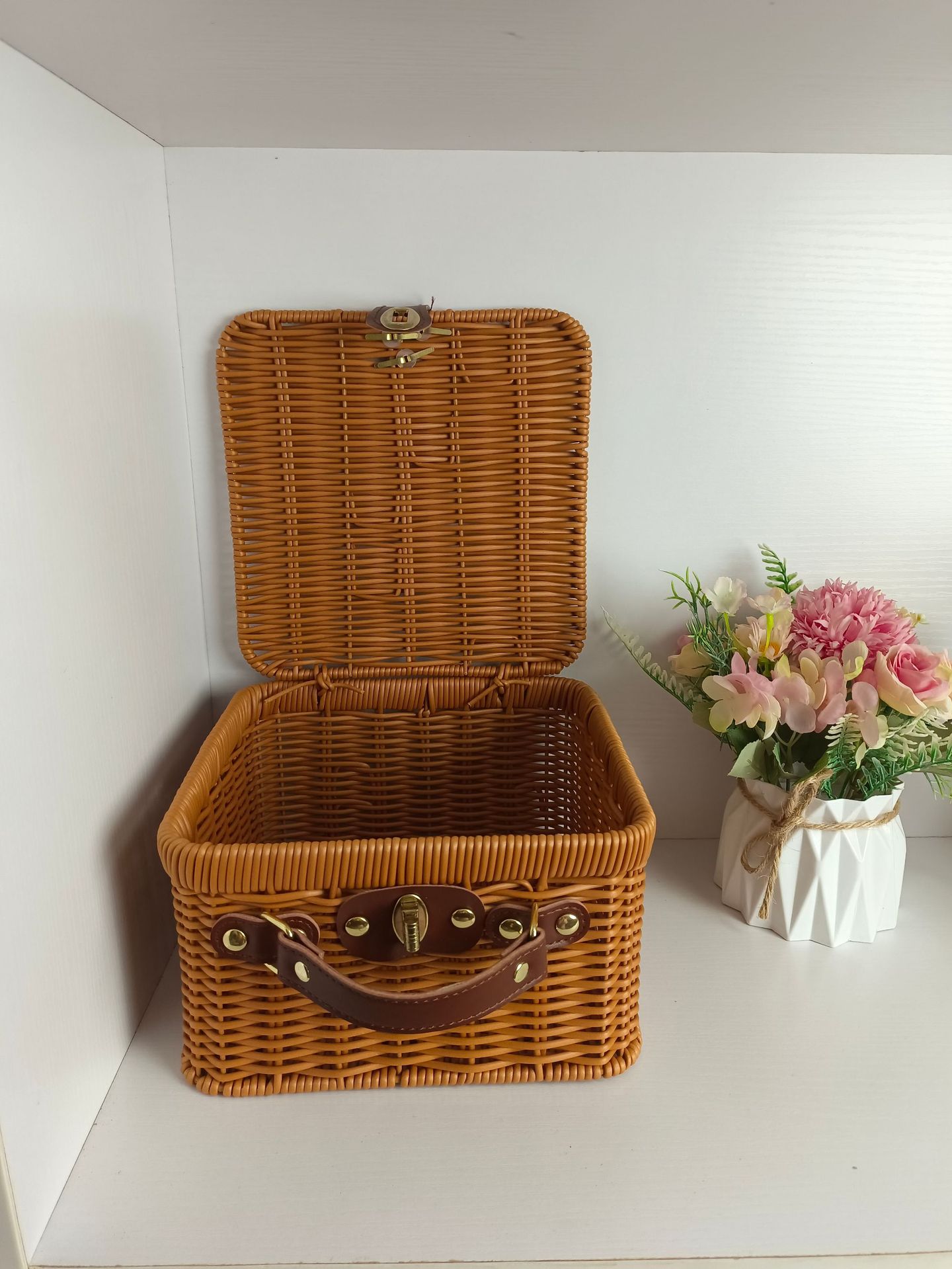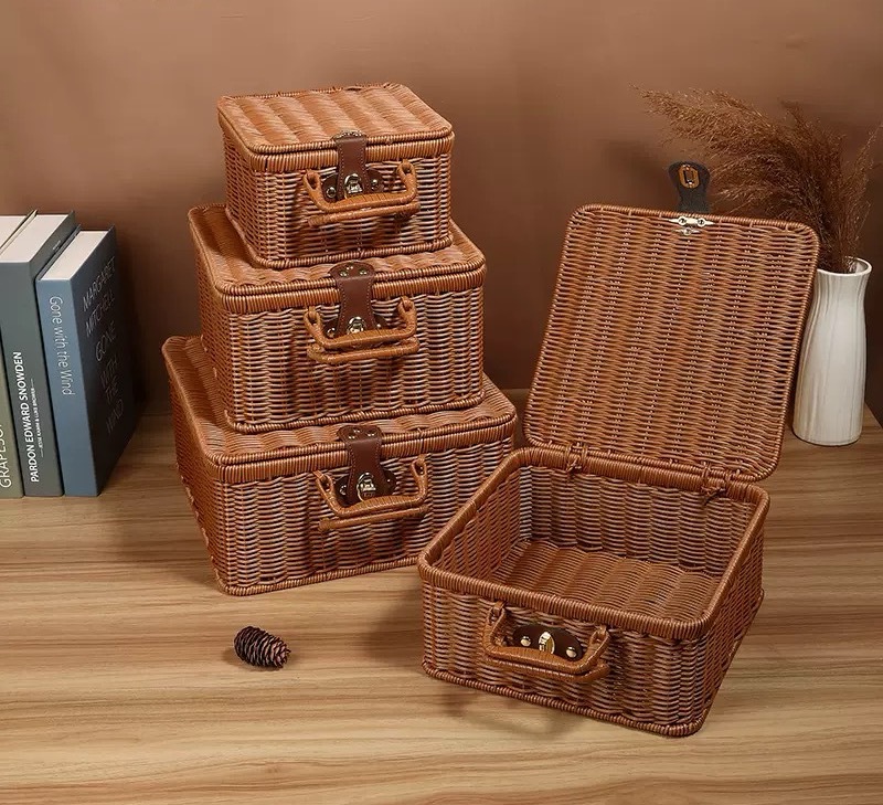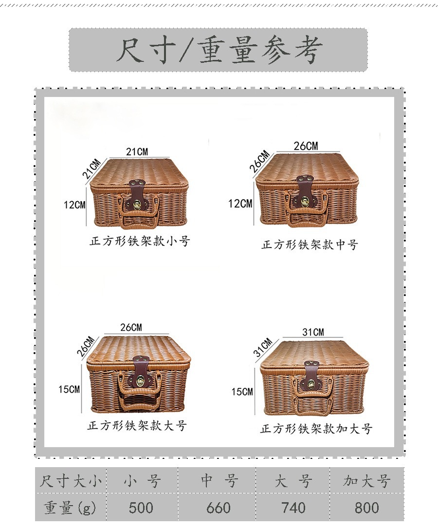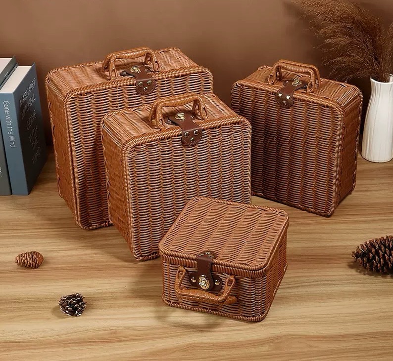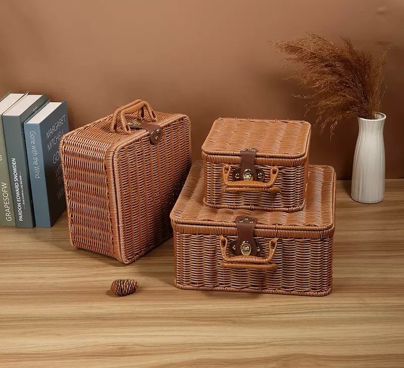 Tejido imitación de caña de bodas regalo de mano de alta calidad caja de almacenamiento cesta de picnic maleta retro caja de prensa fría antigua