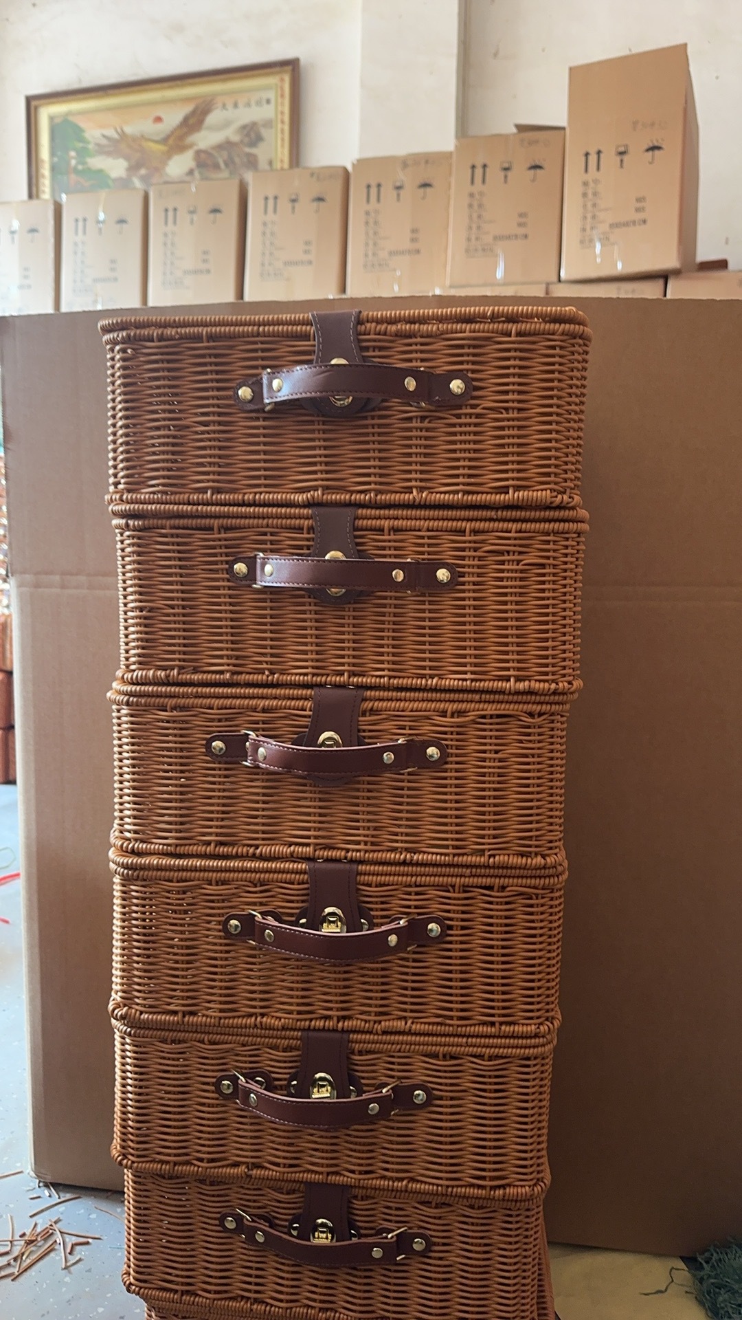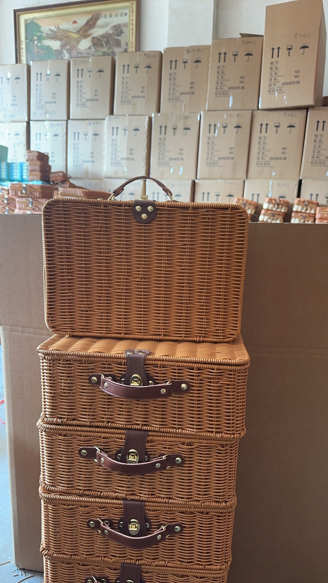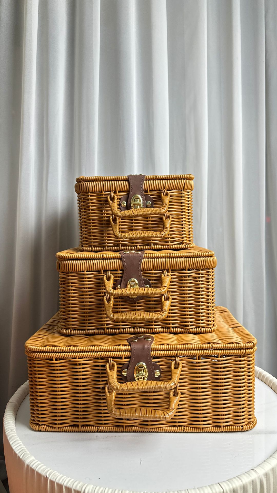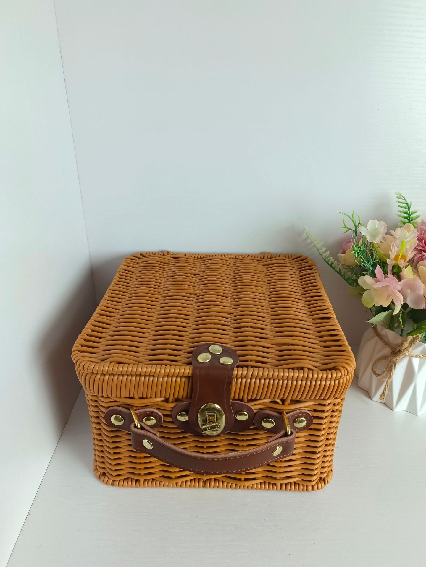 Tejido imitación de caña de bodas regalo de mano de alta calidad caja de almacenamiento cesta de picnic maleta retro caja de prensa fría antigua