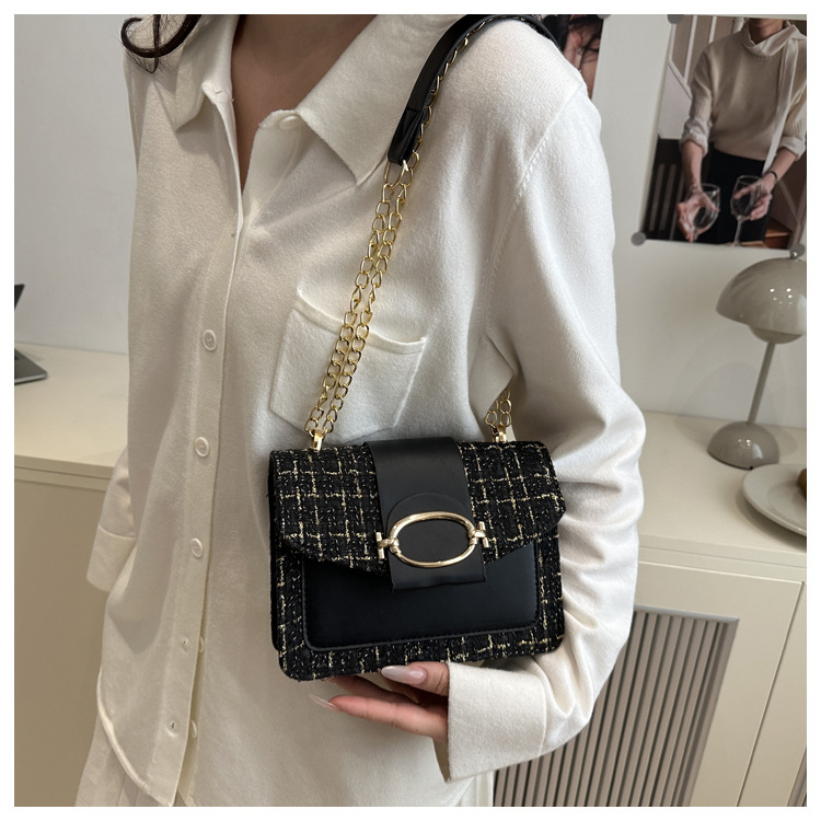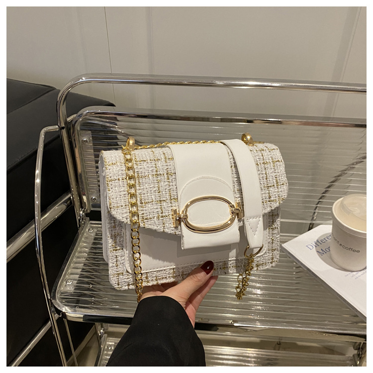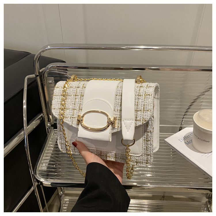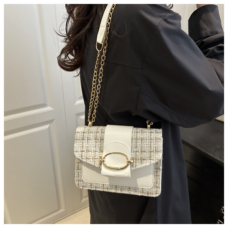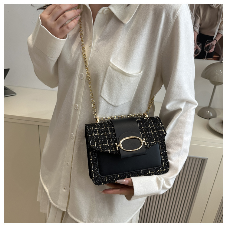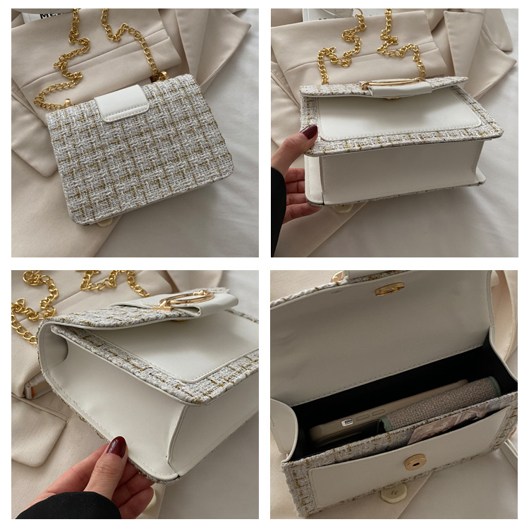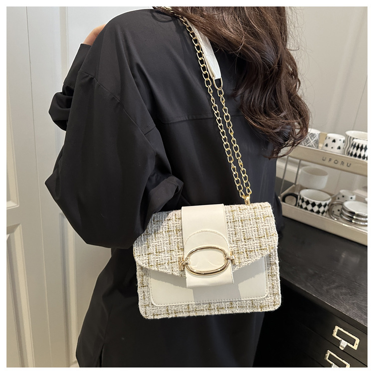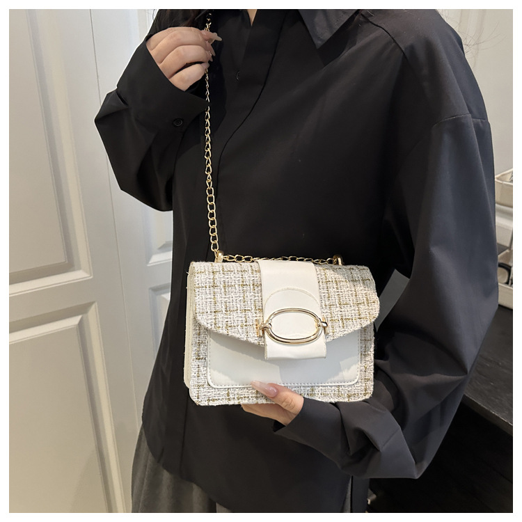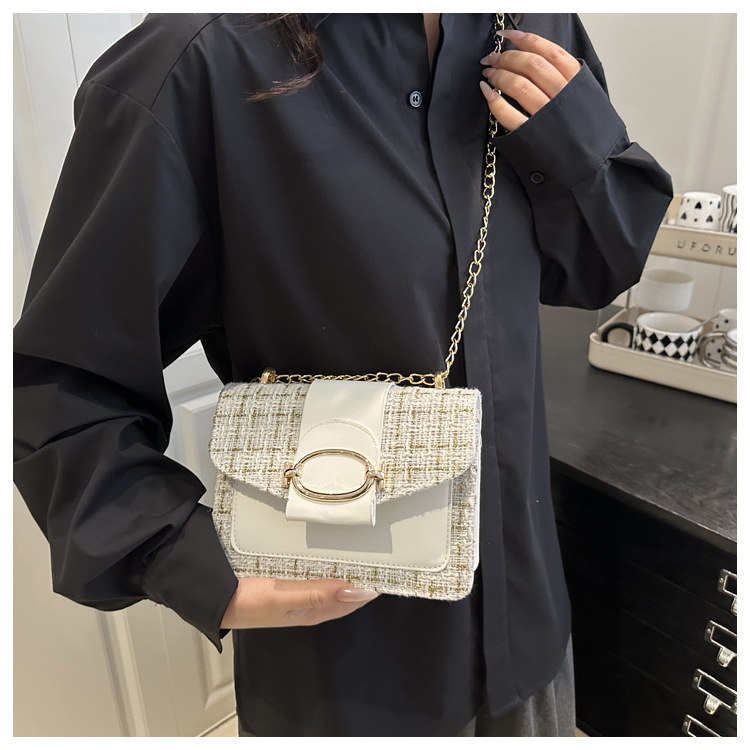Primavera y verano 2025 nueva personalidad tendencia sagrada casual simple cadena de metal bolso de hombro mensajero pequeño cuadrado bolso femenino