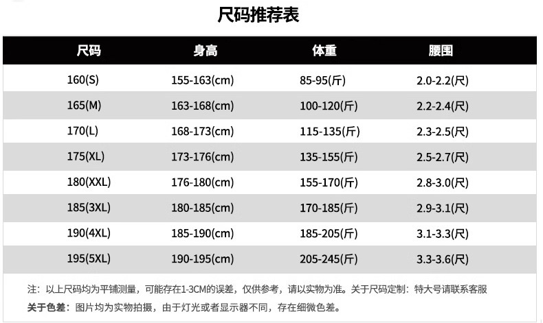 | Talla | 160/S,165/M,170/L,175/XL,180/2XL,185/3XL,190/4XL |