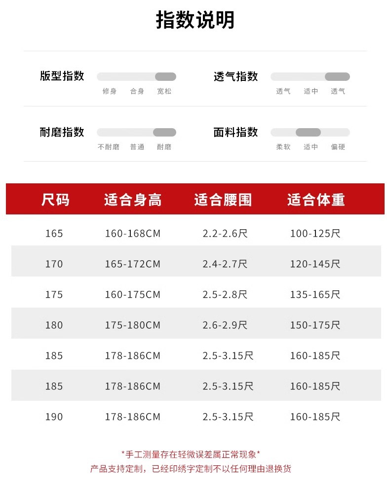 | Talla | 160/S,165/M,170/L,175/XL,180/2XL,185/3XL,190/4XL |