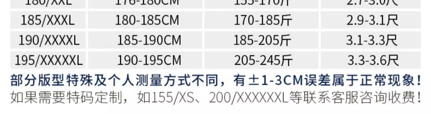 | Talla | 160/S,165/M,170/L,175/XL,180/2XL,185/3XL,190/4XL,195/5XL |
