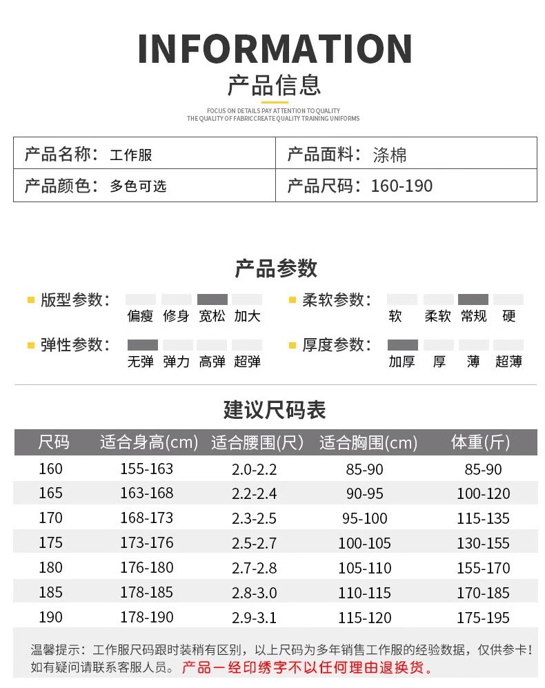 | Talla | 160/S,165/M,170/L,175/XL,180/2XL,185/3XL,190/4XL |
