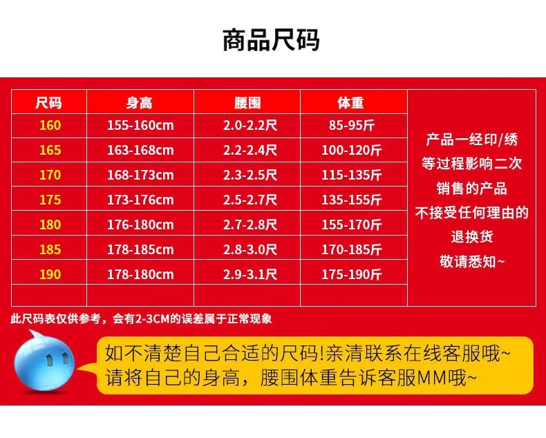| Talla | 160/S,165/M,170/L,175/XL,180/2XL,185/3XL,190/4XL |