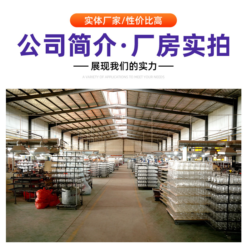 沧州辉盛玻璃制品有限公司作为全国高硼硅玻璃双层杯头部工厂,在高硼硅玻璃双层杯,储物罐,双层法压壶领域已深耕超过 13 年。 公司拥有两个厂区, 6万平方米的现代化生产基地,280 名专业员工致力于研发、制造与销售的每一个环节。其中,30 多名精英组成的专业研发团队,凭借 40余条独立生产线,每月推出 2-10款新款产品。迄今为止,我们已成功打造 50 多种热销款式,累计销量高达8000 万件。我们拥有BSCI SEDEX BEPI FDA LFGB FCM WCA ISO90001 Target 验厂等多项资质,同时我们也是迪士尼,沃尔玛的供应商。 我们支持来图来样定制、OEM/ODM、一件代发、跨境贴标代发、48小时发货、免费设计等服务。承接外贸出口定制订单、跨境电商平台订单、国内礼品定制等业务。