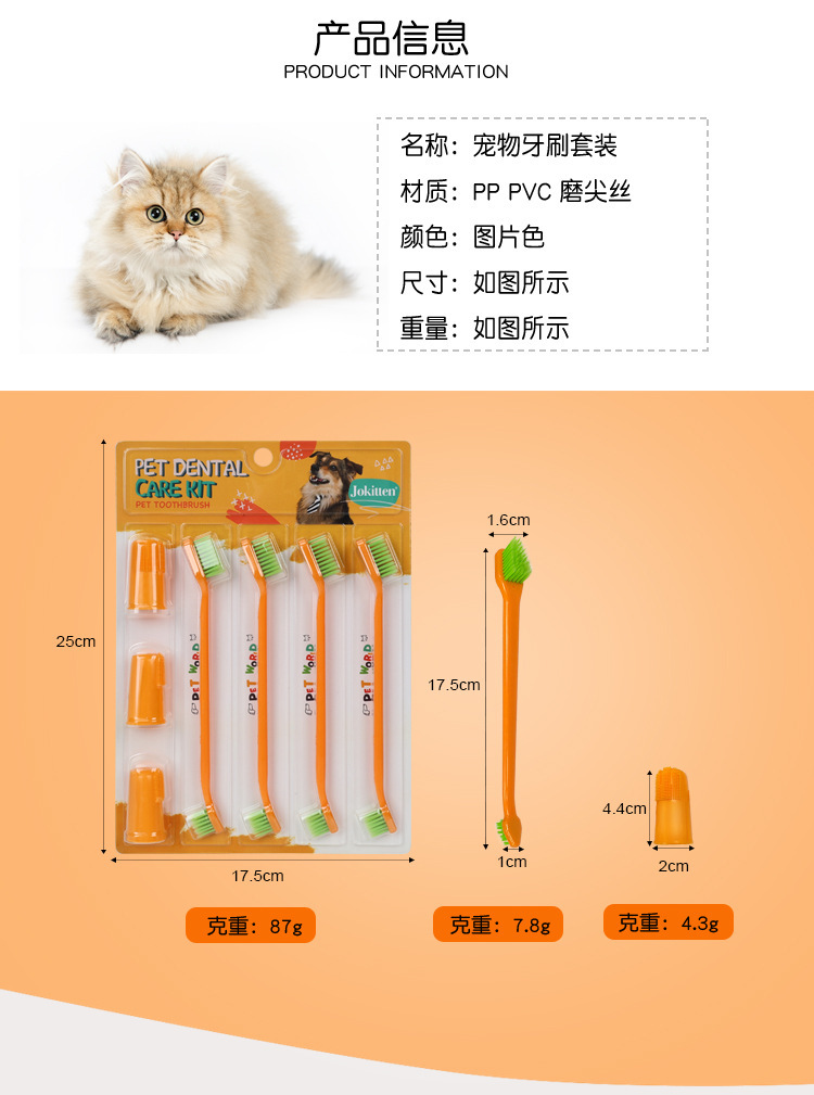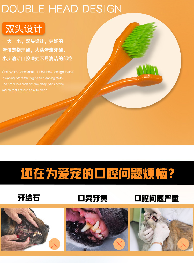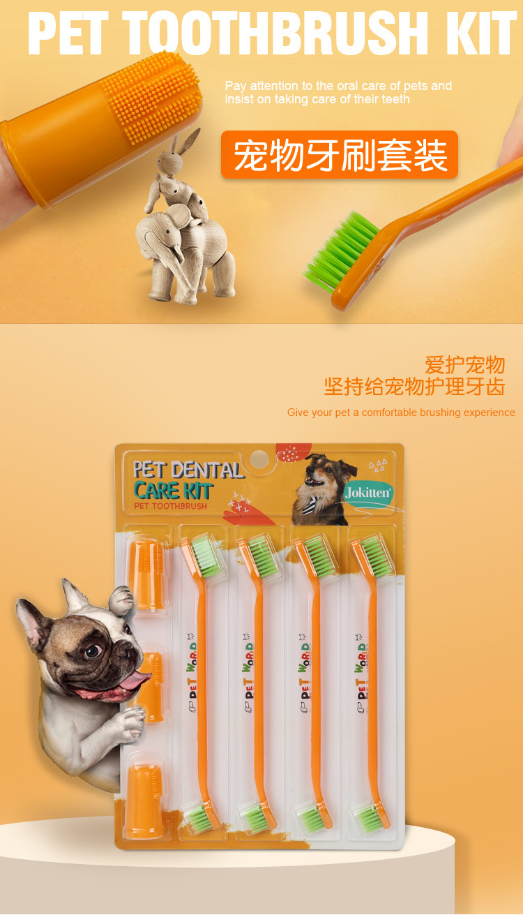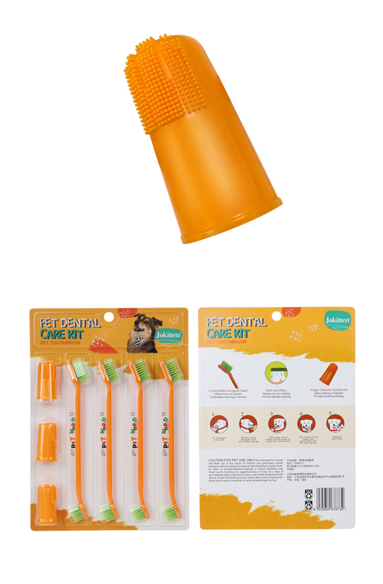 Set de cepillo de dientes para mascotas, cepillo de dientes de dedo para mascotas, cepillo de dientes de doble cabeza, limpieza oral para perros, set de cepillo de dientes para perros, gatos