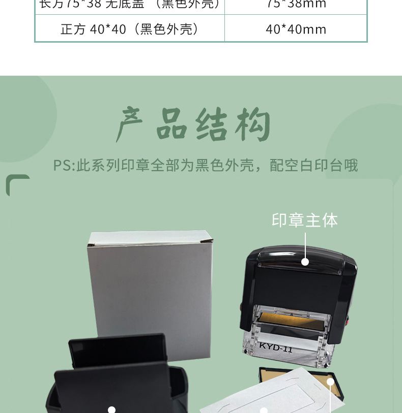 KYD-R38 (redonda 38), KYD - 310R (redonda 31), KYD - 170R (redonda 17), KYD - 26 (longitud 75 * 38), KYD - 13 (longitud 58 * 22), KYD - 15 (longitud 70 * 25), KYD - 10 (longitud 26 * 9), KYD - 12 (longitud 47 * 18), KYD - 11 (longitud 38 * 14), KYD - 24 (cuadrado 40)