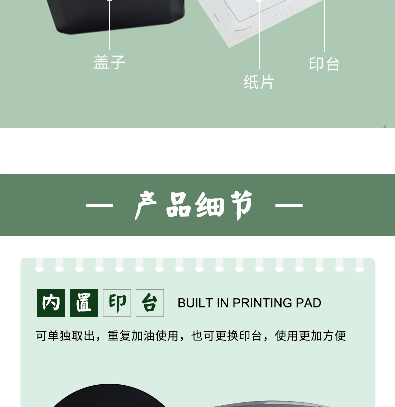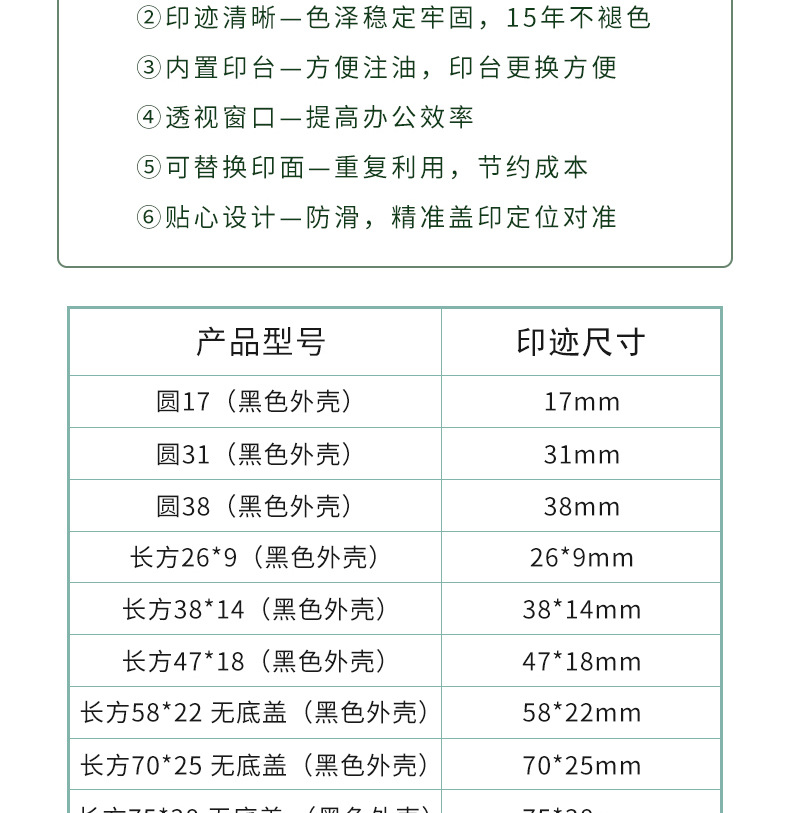 Zhuodaco Inda flip sello redondo rectangular concha negra de tinta de tinta de nuevo sello material de sello de oficina al por mayor