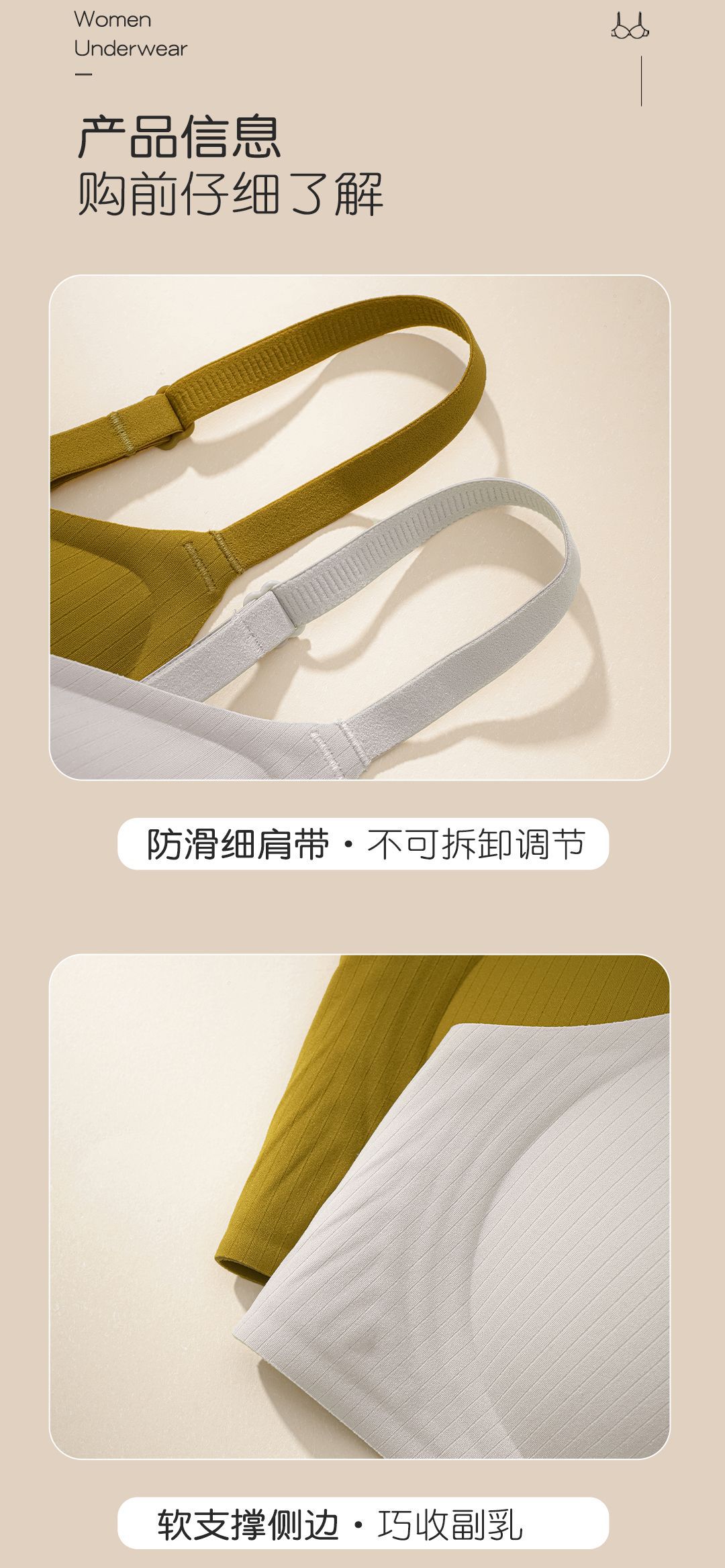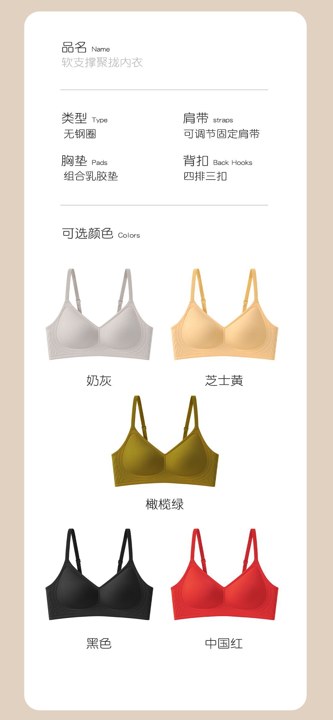 | Función | Cierre lateral,Colección de pechos,El pecho grande te hace parecer más pequeño |