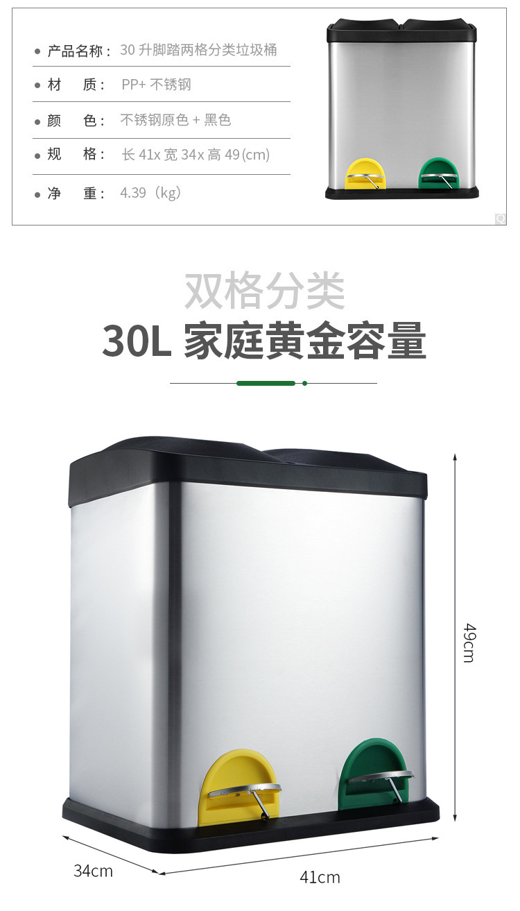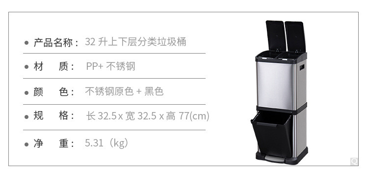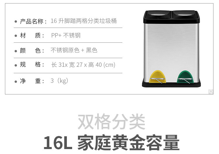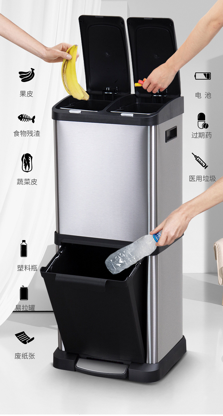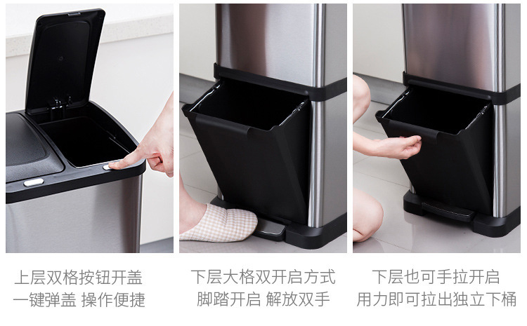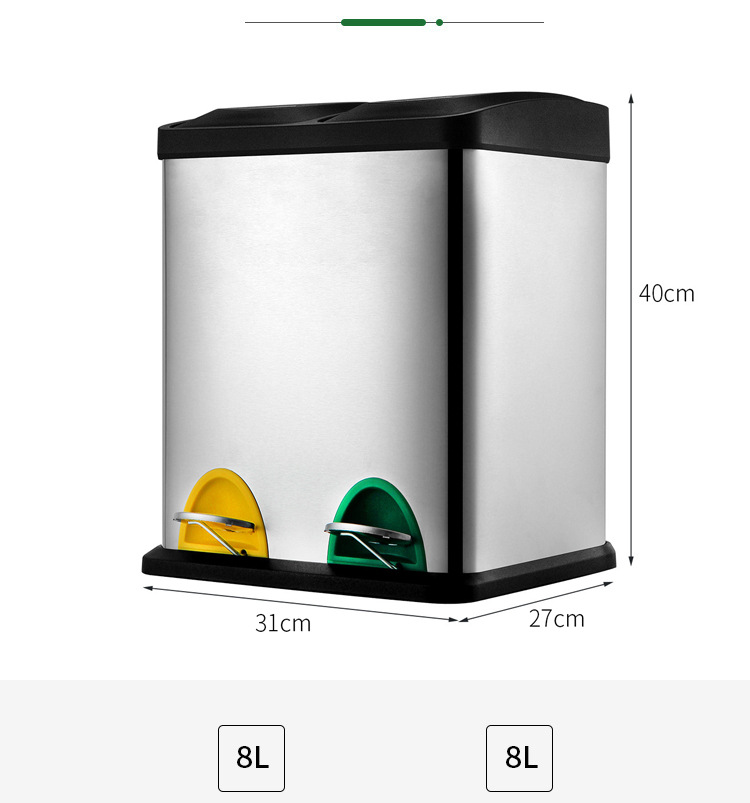 | Color | Barril rectangular individual de 8L [operado con el pie],Barril rectangular individual de 15L [operado con el pie],16L dos barriles de clasificación [tipo pedal],Clasificación de Tres barriles 24L [tipo pedal],30L dos barriles de clasificación [tipo pedal],Clasificación de tres barriles de 45L [operado con el pie],Clasificación de dos barriles de 48L [operado con el pie],Clasificación de dos barriles de 60L [operado con el pie],32L clasificación superior e inferior [botón superior pedal inferior] |