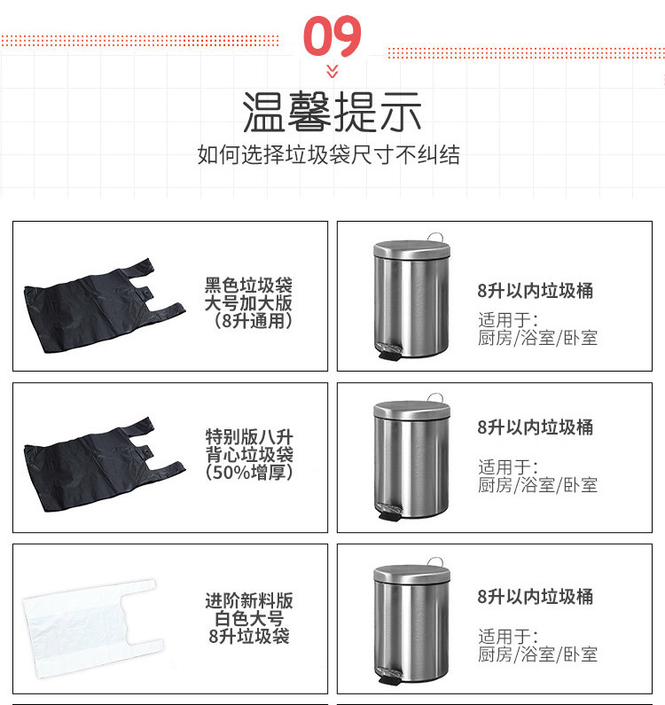 | Color | 3-8L [espesado 3,2 Seda 300 PCs],10L [espesado 3,4 Seda 100 PCs],12L [espesado 3,4 Seda 200 PCs],20L [engrosada 3,4 Seda 100 PC],20L [engrosada 3,4 Seda 200 PC],30L [extra grueso 5 seda 100 PCs],30L [extra grueso 5 seda 200 PCs] |