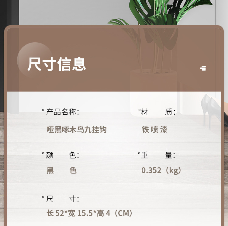 | Color | Nueve ganchos negros |