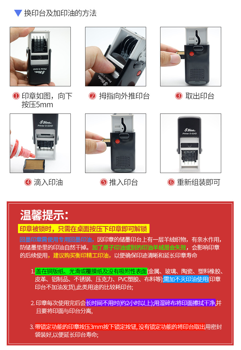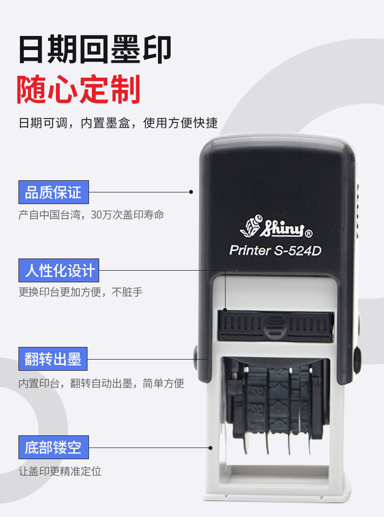 | Uso | Producción de sellos de uso diario, sellos de oficina y otros logotipos |