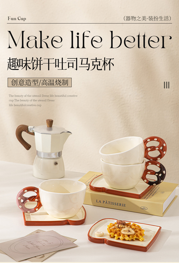 Creativo de cerámica europea taza de café plato conjunto de pan bandeja taza de desayuno casera de gran capacidad taza de agua