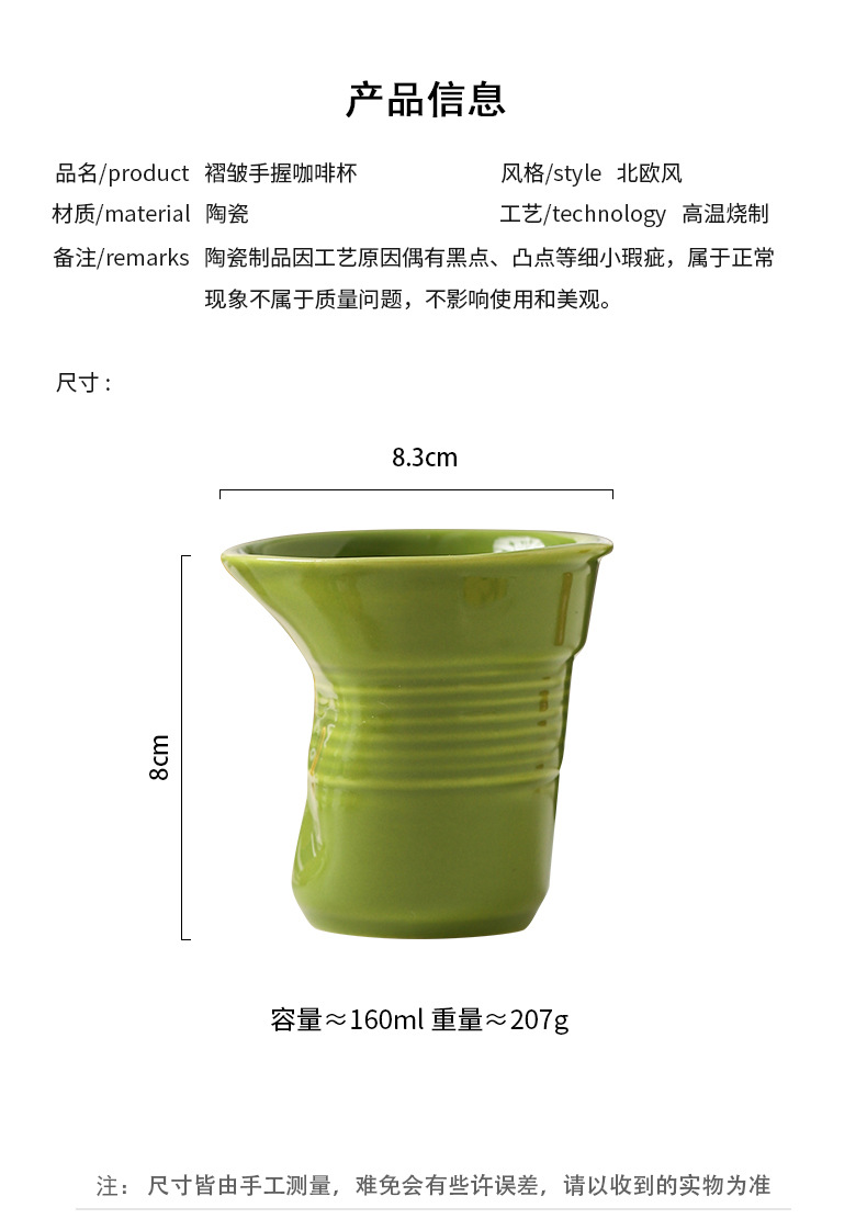 | Colores | Taza plisada beige,Taza plisada verde,Taza plisada amarilla,Taza plisada negra,Taza plisada roja,Taza plisada de color caqui |