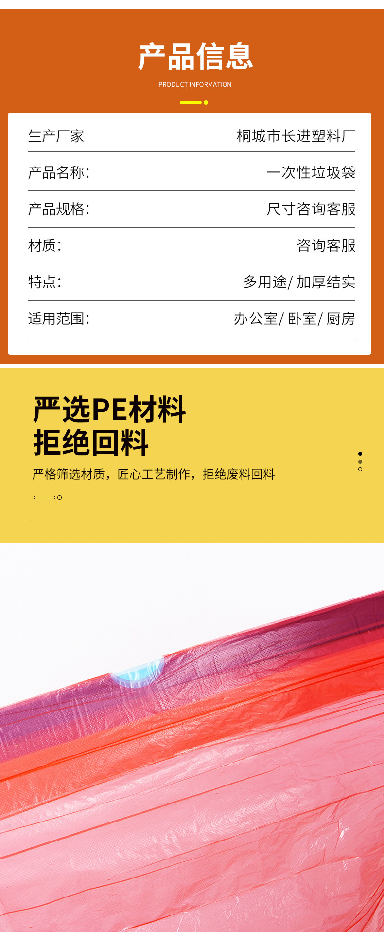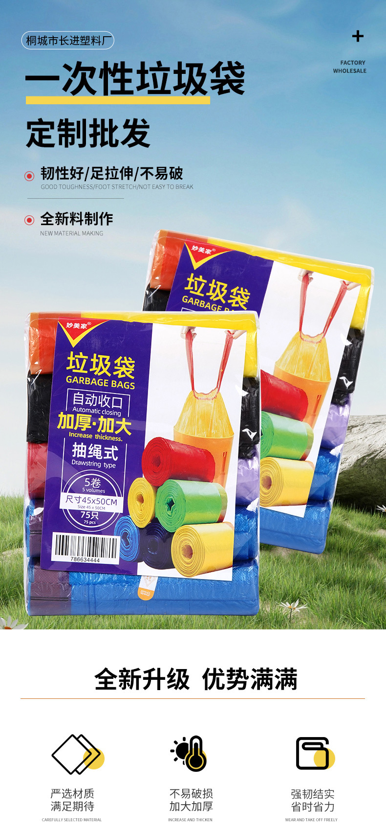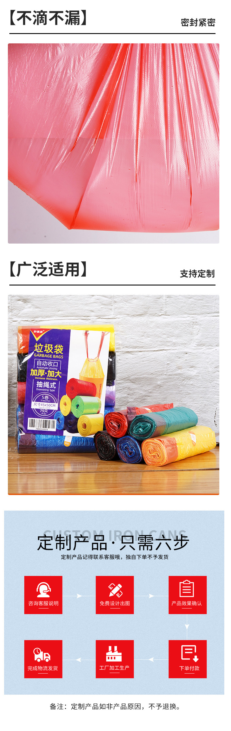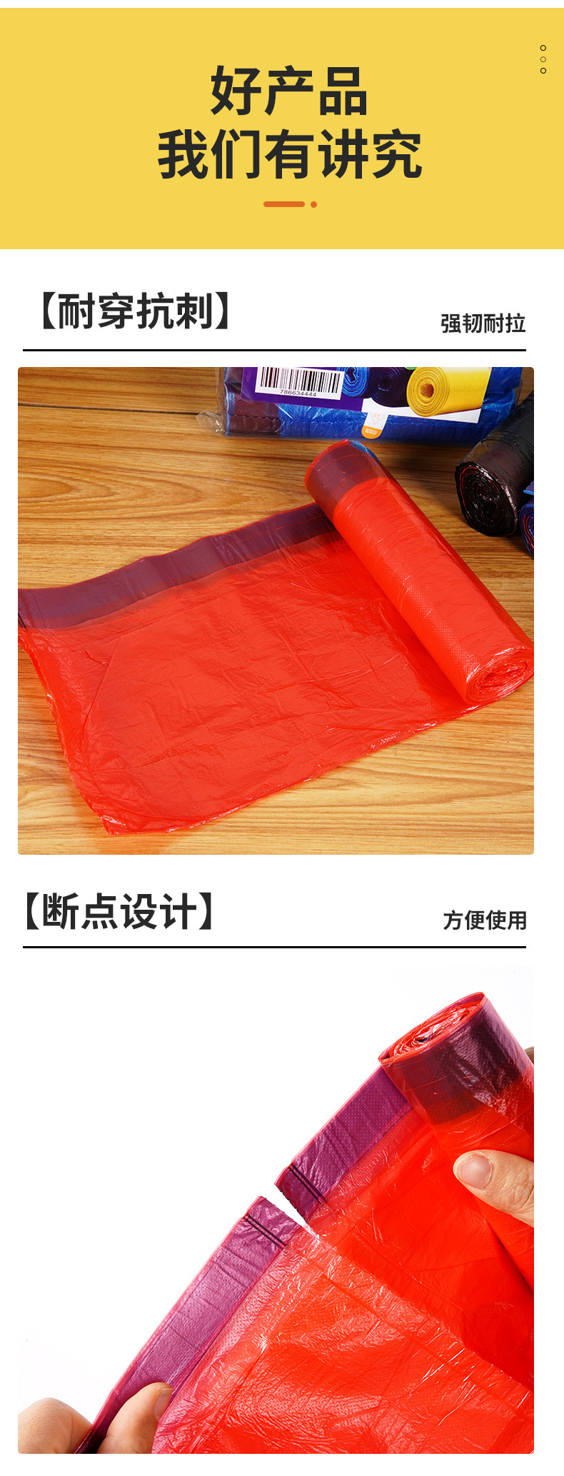 [Nuevo material bolsa de basura engrosada] color de alta calidad punto de ruptura rollo continuo desechable bolsa de plástico sólido al por mayor