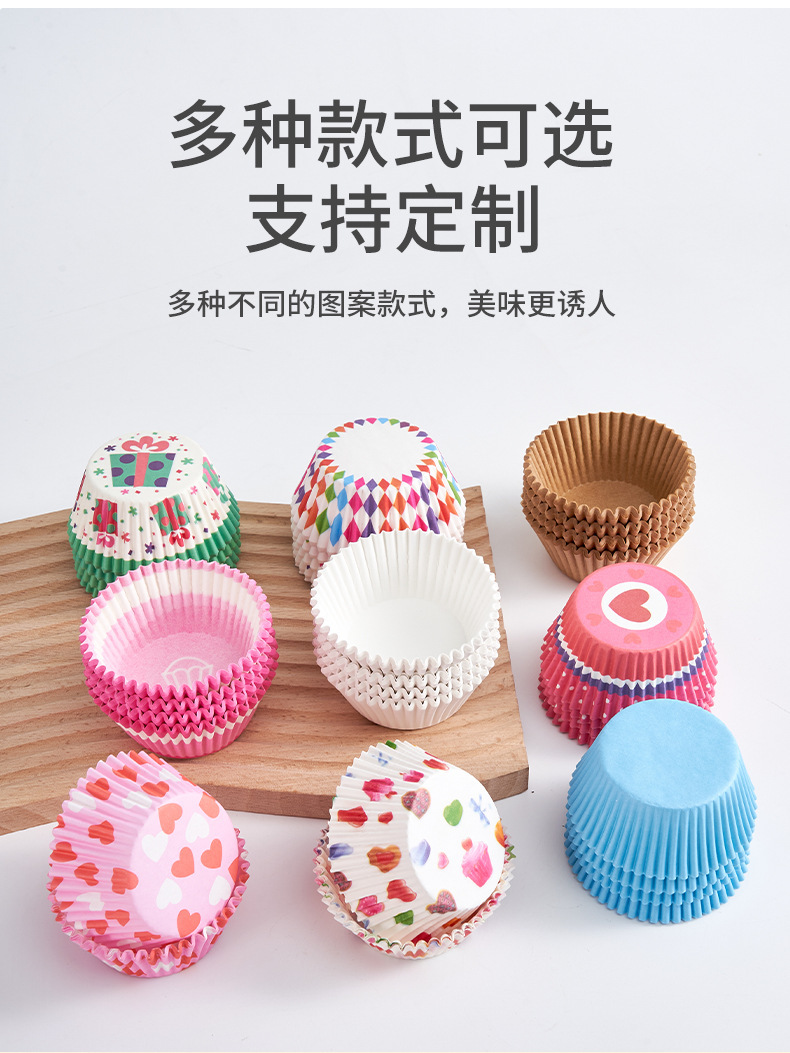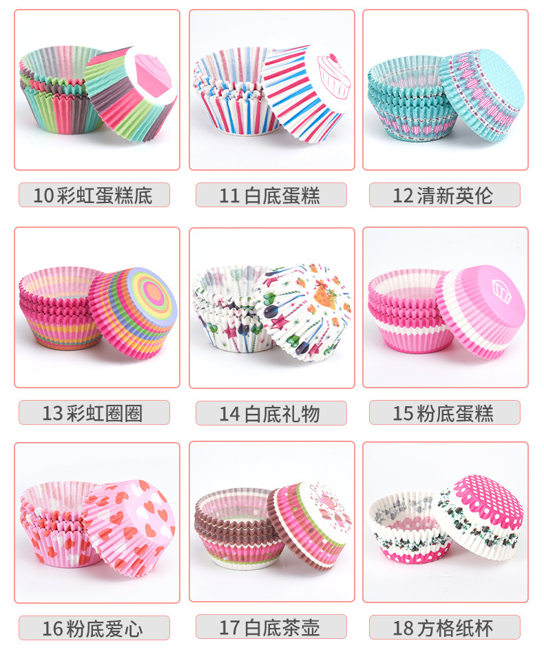 工厂批发纸杯蛋糕托 彩色图案马芬蛋糕底托纸垫100只装烘焙纸杯