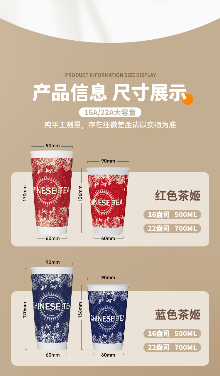 | Colores | Europeo 8 [copa corrugada burdeos],16A doble capa [Historia de flores y pájaros] sin tapa,22A doble capa [Historia de flores y pájaros] sin tapa,22A doble capa [Blue Tea Ji] sin tapa,16A doble capa [Blue Tea Ji] sin tapa,22A doble capa [Red Tea Ji] sin tapa,16A doble capa [Red Tea Ji] sin tapa,Vaso de papel de doble capa de 280 ml + tapa blanca con interruptor + sticker ilustrativo.,Vaso de papel de doble capa de 330 ml + funda de cadena blanca + pegatina de ilustración,Vaso de papel de doble capa de 400 ml + tapa de cadena blanca + pegatina de ilustración,Vaso de papel de doble capa de 500 ml + funda de cadena blanca + pegatina de ilustración,16A doble capa [Red Tea Ji] con cubierta multifuncional negra,22A doble capa [Blue Tea Ji] con cubierta multifuncional negra,16A doble capa [Historia de flores y pájaros] con cubierta multifuncional negra,22A doble capa [Red Tea Ji] con cubierta multifuncional negra,22A doble capa [Historia de flores y pájaros] con cubierta multifuncional negra,16A doble capa [Blue Tea Ji] con multifuncional negro,100/paquete de pajitas negras 19cm*0,6cm,100/paquete de pajitas marrones de tres agujeros 18cm*1.1cm,Nuevo [Montaña y Naturaleza] 400ml doble capa sin tapa,Novedad: Vaso de doble pared "Mountain Breeze" de 400 ml con tapa entrelazada blanca.,Novedad: Vaso de doble pared "Mountain Breeze" de 400 ml con tapa entrelazada negra. |