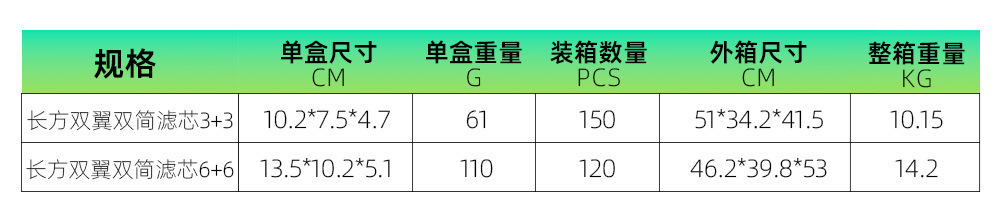 344-Cartucho de doble ala rectangular 3 + 3,344 - Cartucho de doble ala rectangular 6 + 6