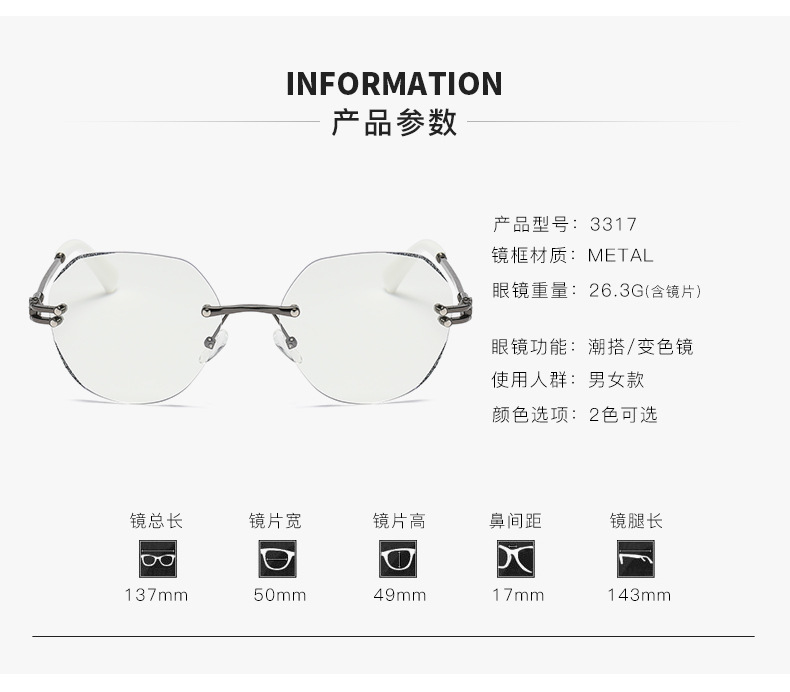 | Estructura de gafas | Sin marco |