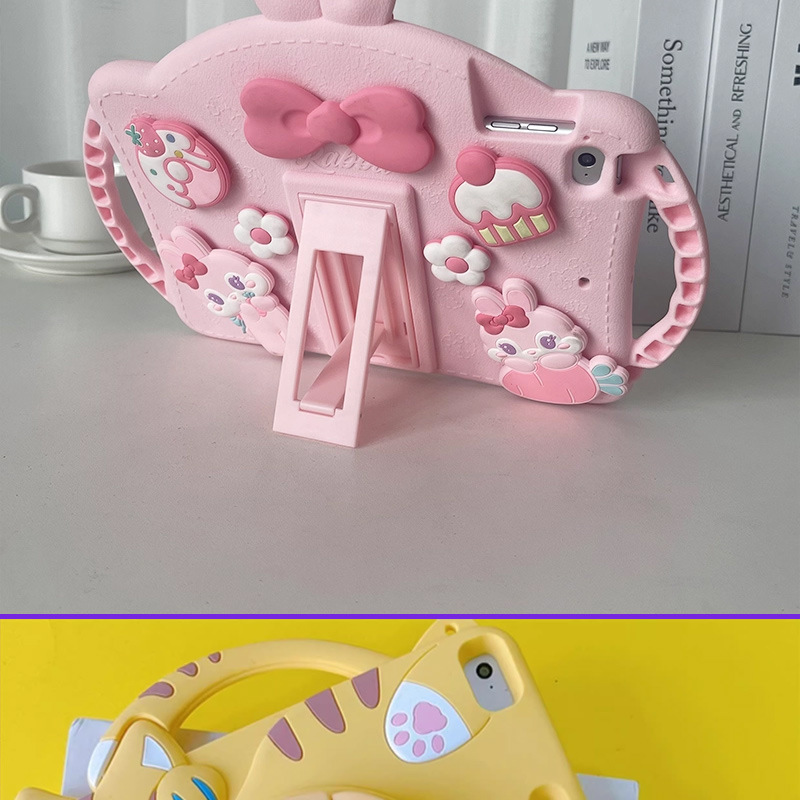 Cover para iPad protector de silicona personalizado anti-caída protector de tabletas de silicona de dibujos animados 3D colgante conjunto de soporte suave