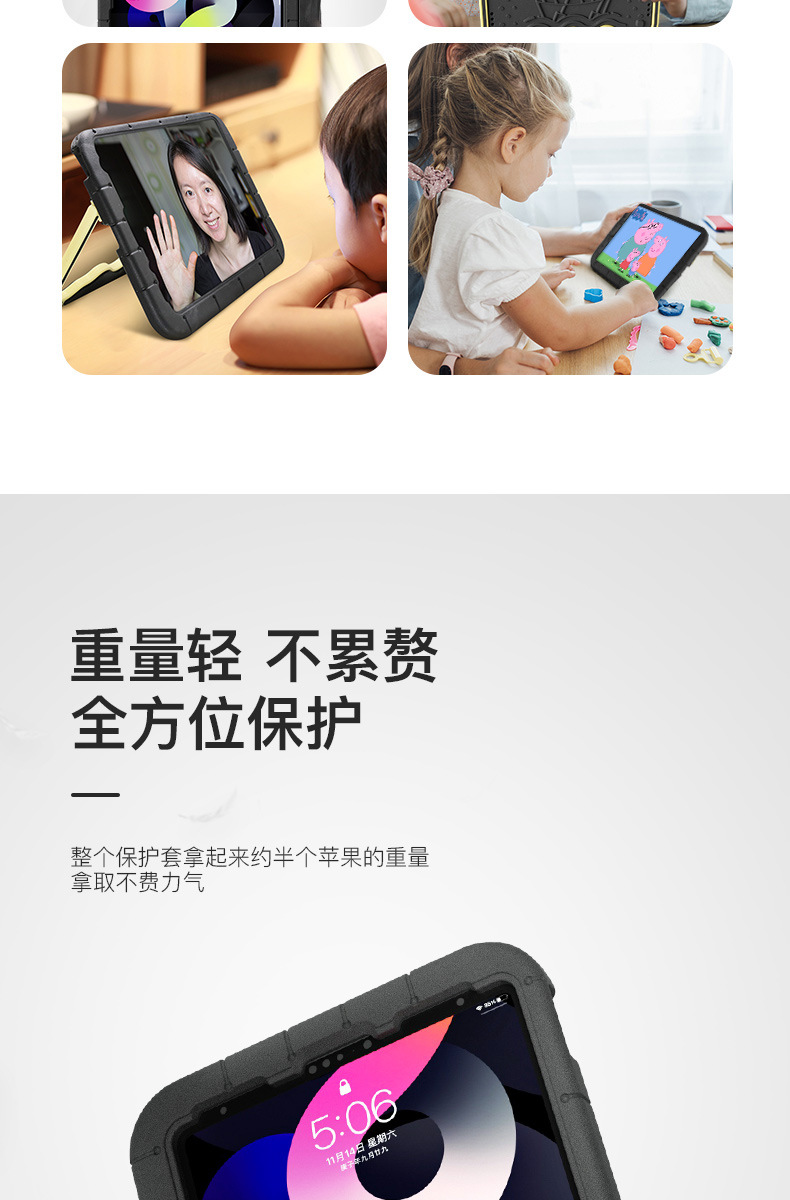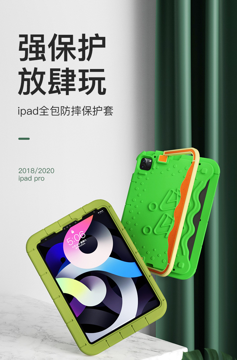 iPad de 11 pulgadas cubierta mini6 / 7 a prueba de caídas 10.2 / 9.7 / air3 / Air7 / pro11 color caramelo de dibujos animados