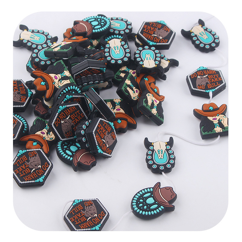品名:卡通西部牛仔硅胶珠 尺寸:牙胶高大约3cm