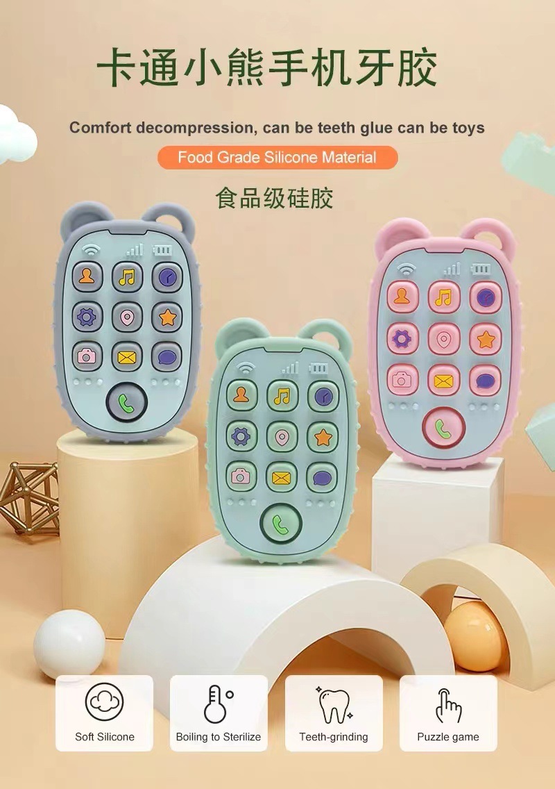 Pequeño oso control remoto goma de diente para niños goma de mordida para calmar anti-comer artefacto de mano de grado alimenticio silicona juguete de apetito